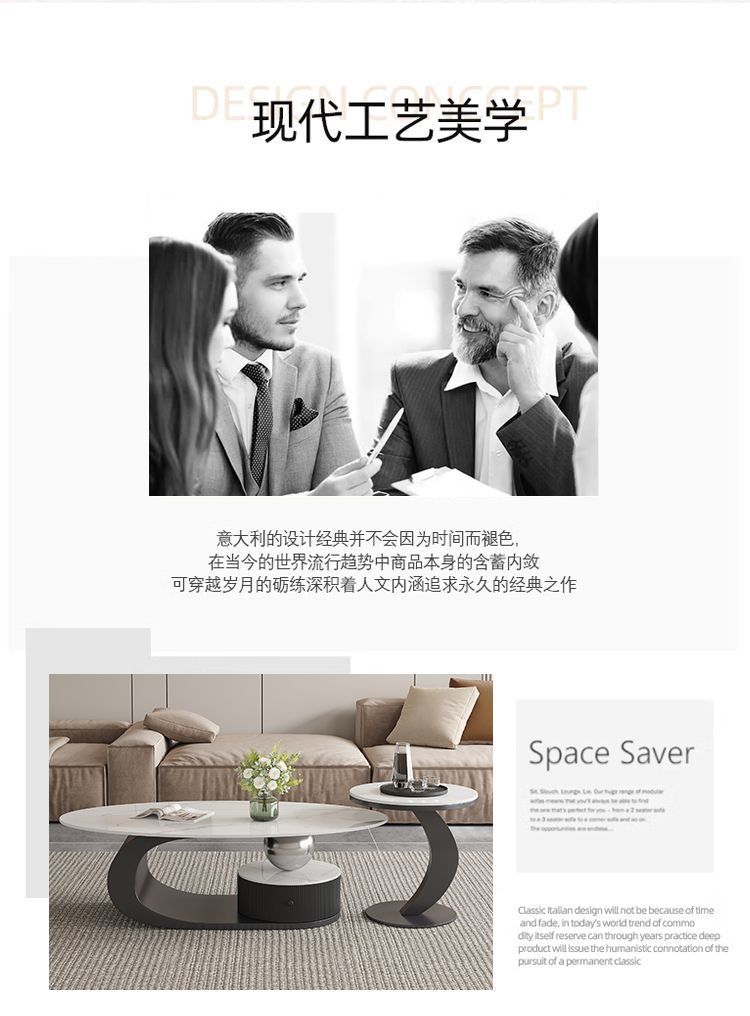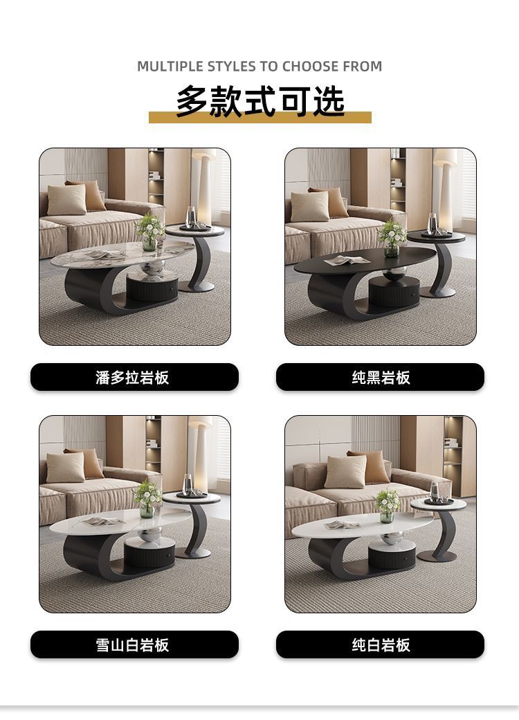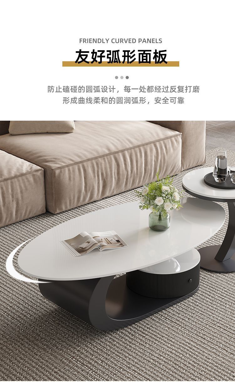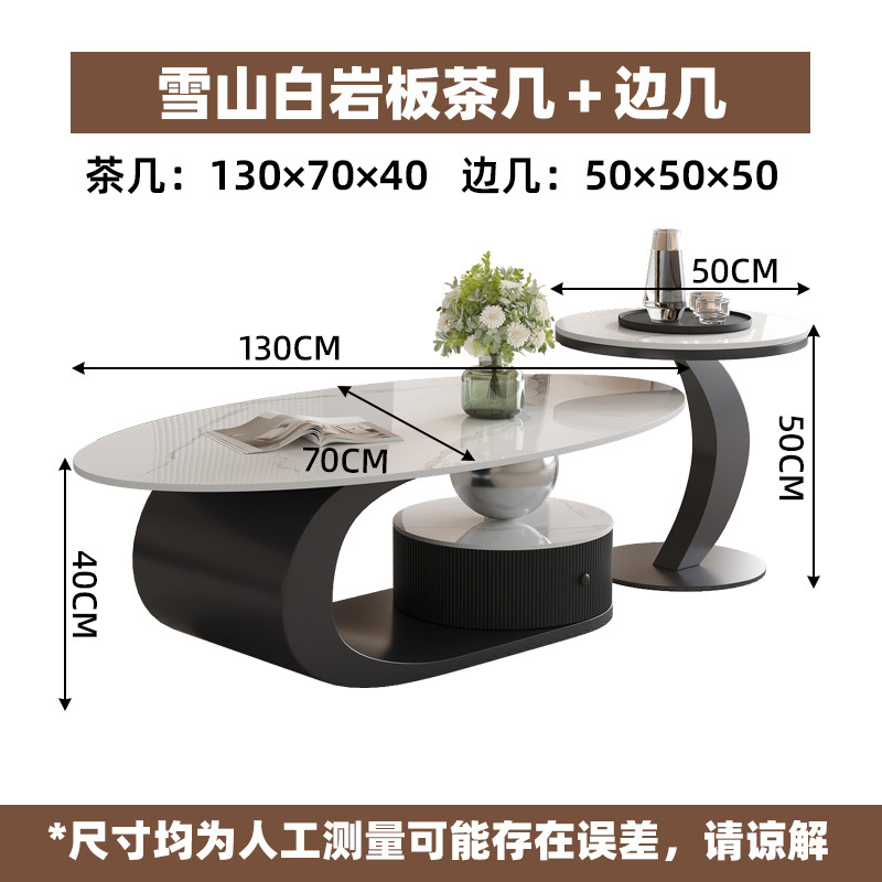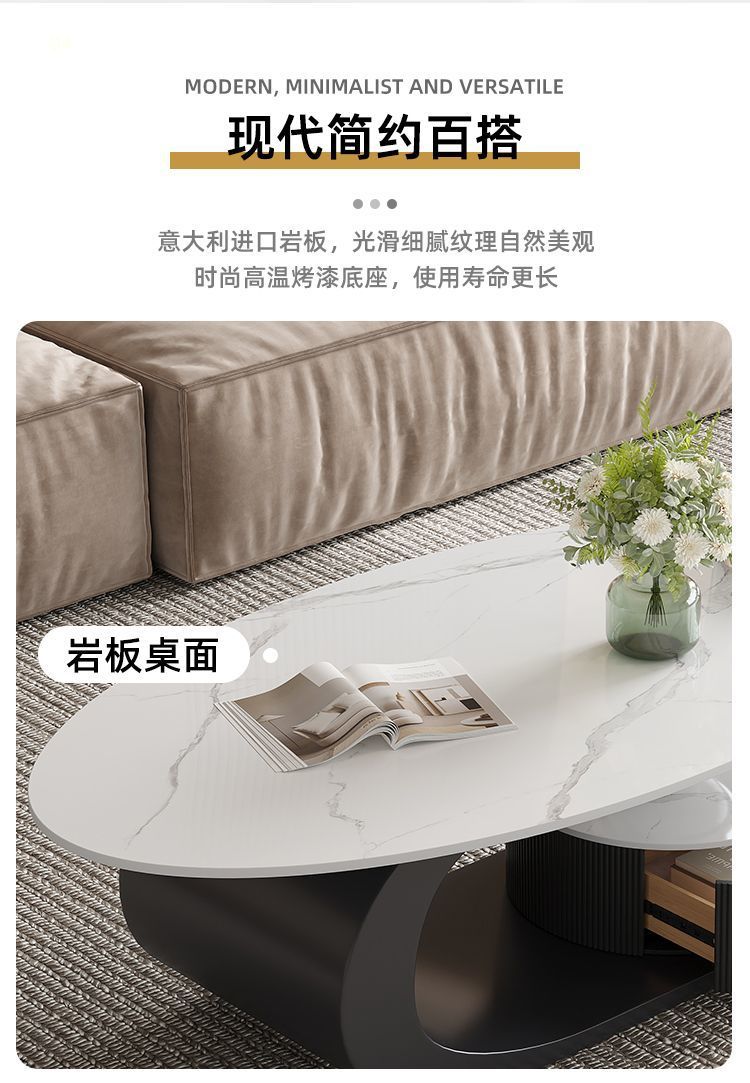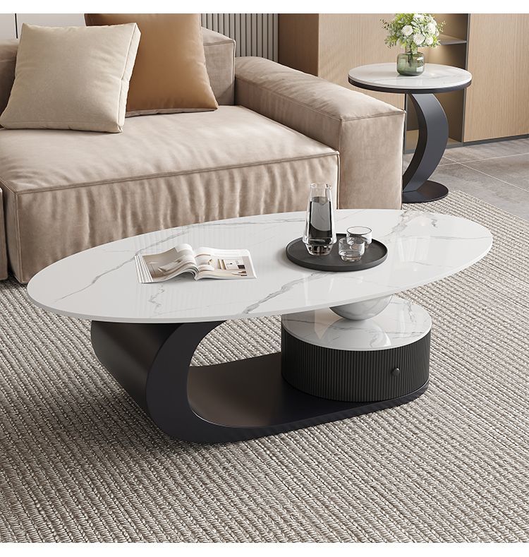 이탈리아 스타일의 가벼운 고급 타원형 슬레이트 커피 테이블 작은 거실 홈 미니멀리스트 티 테이블 디자인 하이 엔드 조합스토어 가기