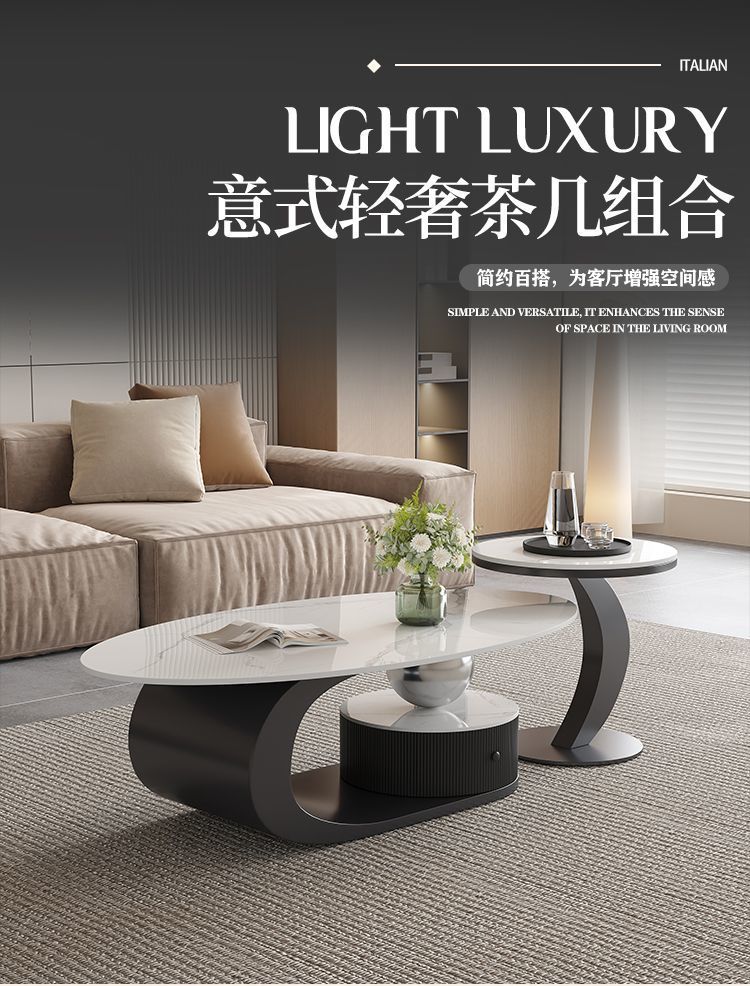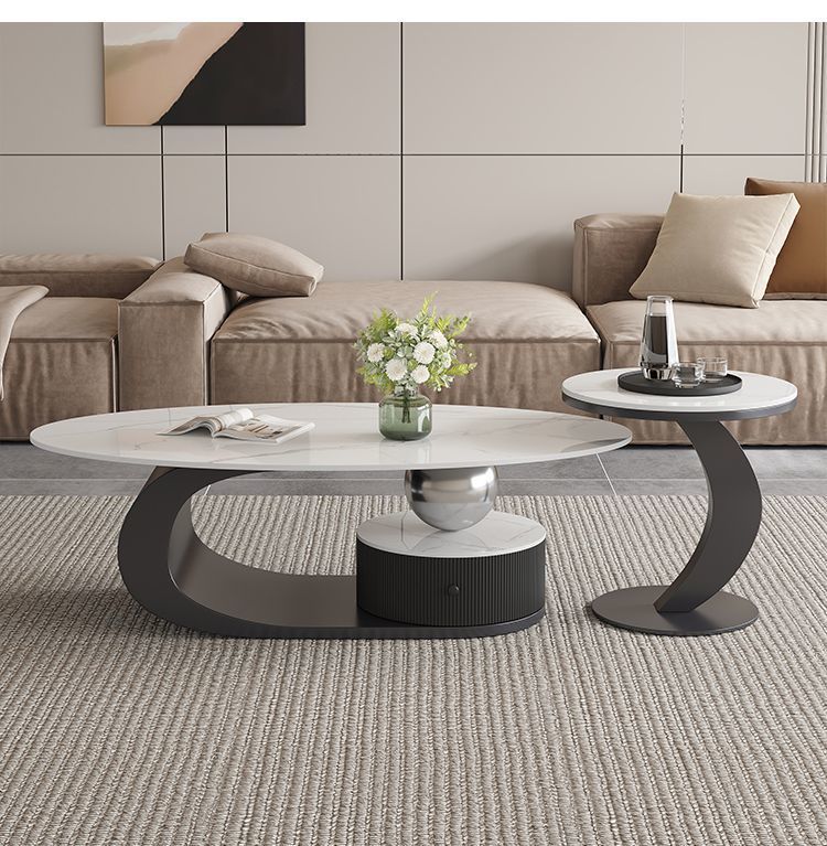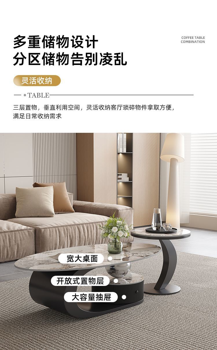 이탈리아 스타일의 가벼운 고급 타원형 슬레이트 커피 테이블 작은 거실 홈 미니멀리스트 티 테이블 디자인 하이 엔드 조합