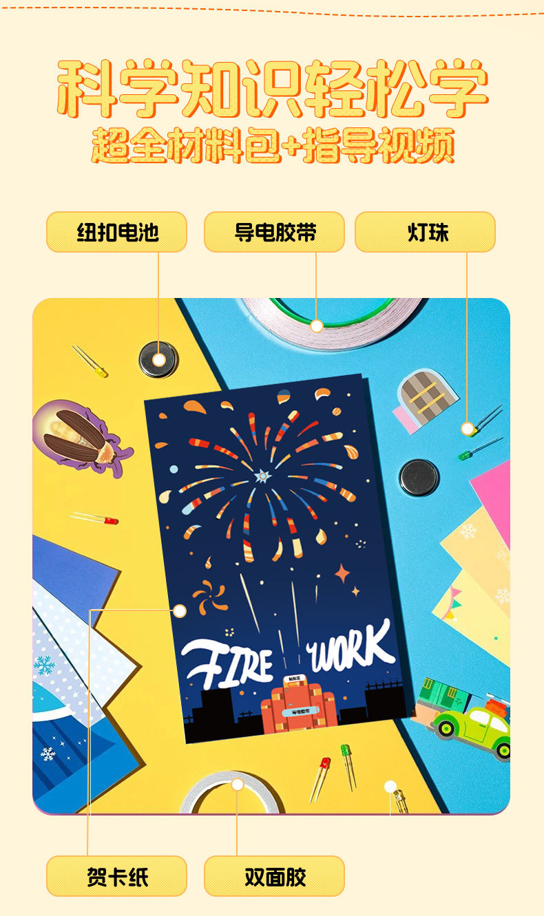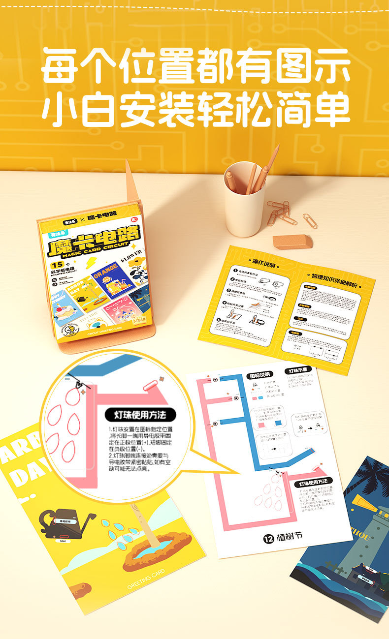 Qingmuyu 빛나는 인사말 카드 수제 DIY 마법의 종이 회로 과학 실험 재료 패키지 물리적 교육 장난감 세트스토어 가기