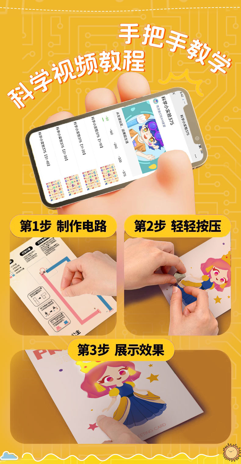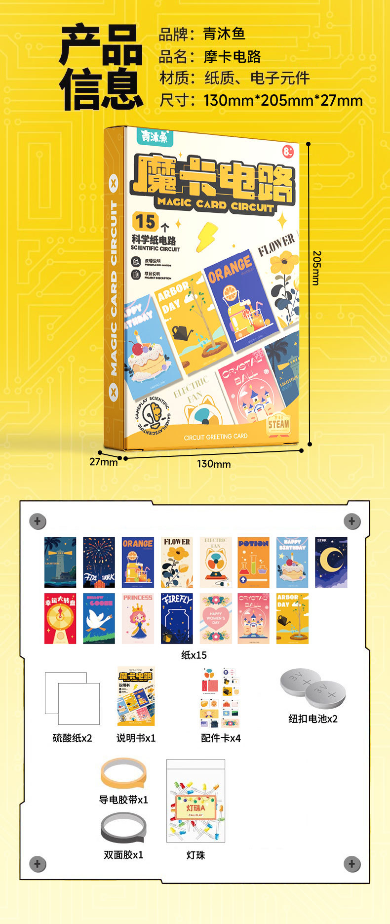 Qingmuyu 빛나는 인사말 카드 수제 DIY 마법의 종이 회로 과학 실험 재료 패키지 물리적 교육 장난감 세트