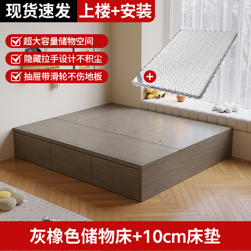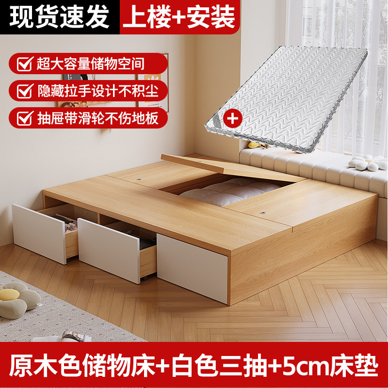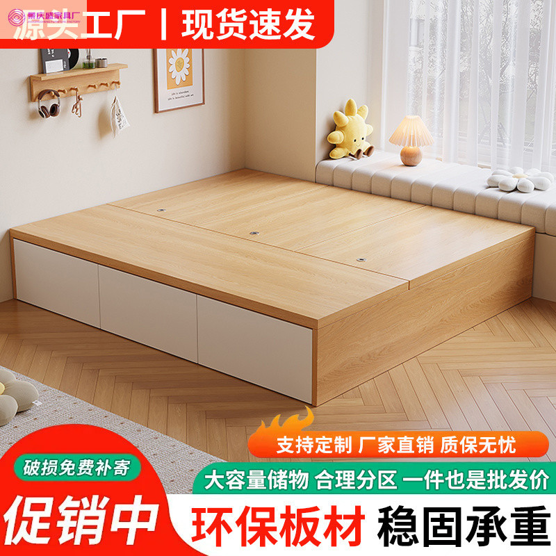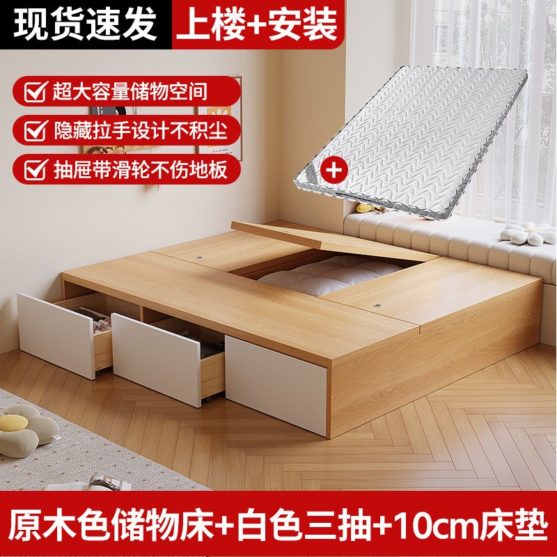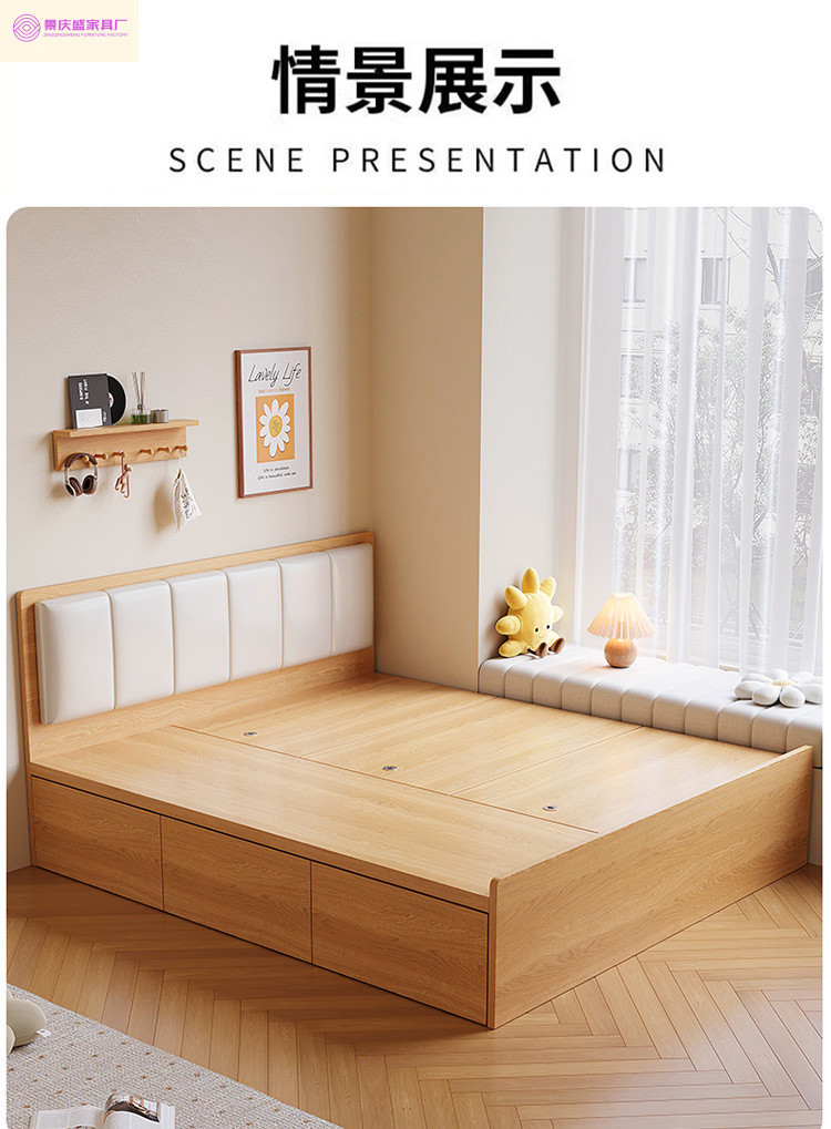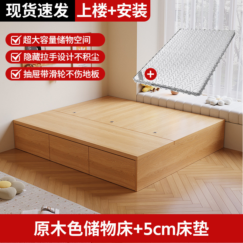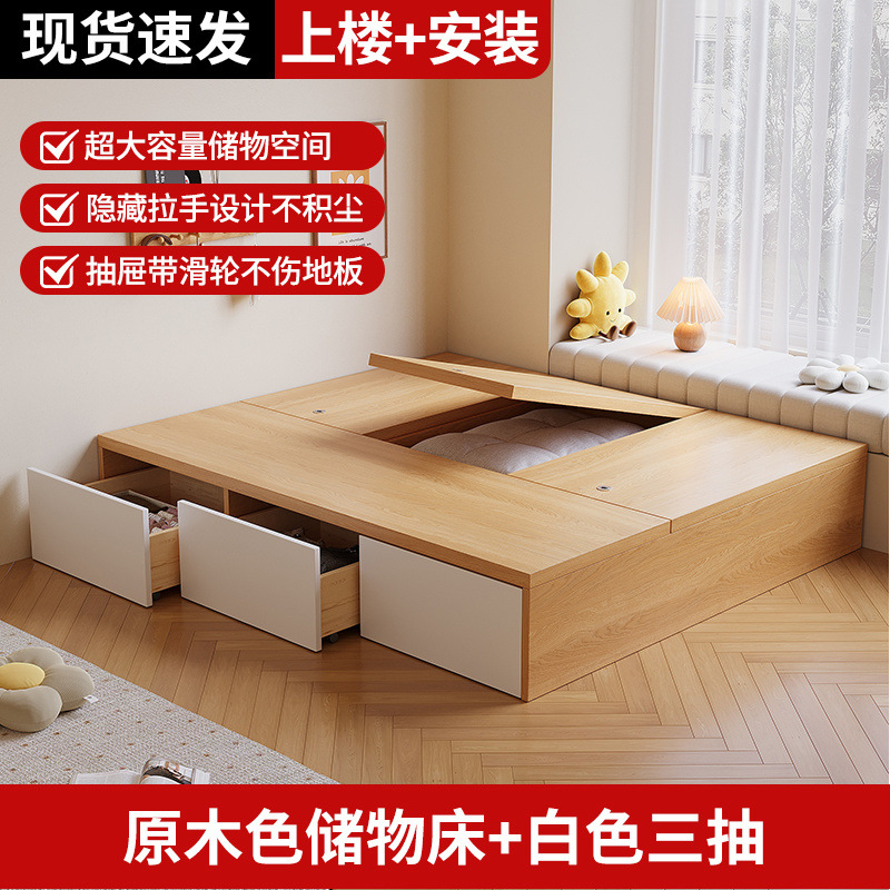 원목 침대, 모던하고 심플한 수납 더블 침대, 하이박스, 침대 옆 수납 없음, 소형 다다미 싱글 침대스토어 가기