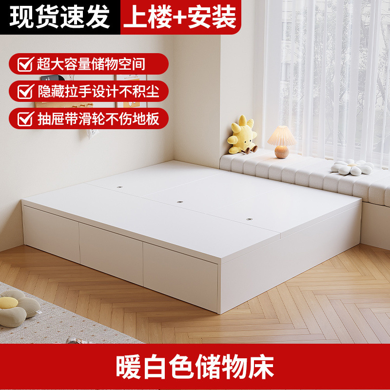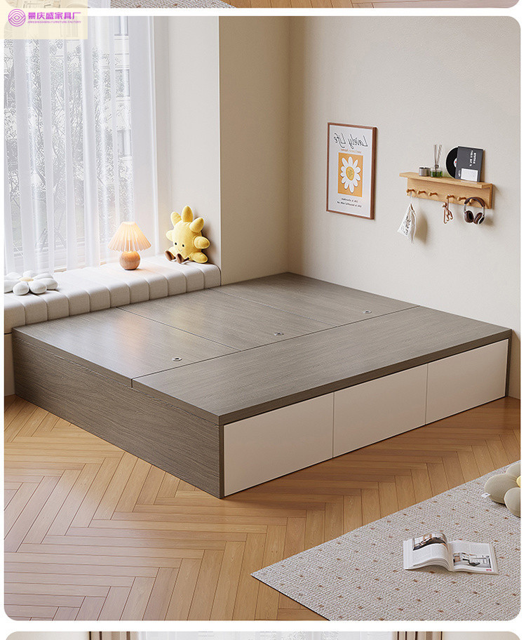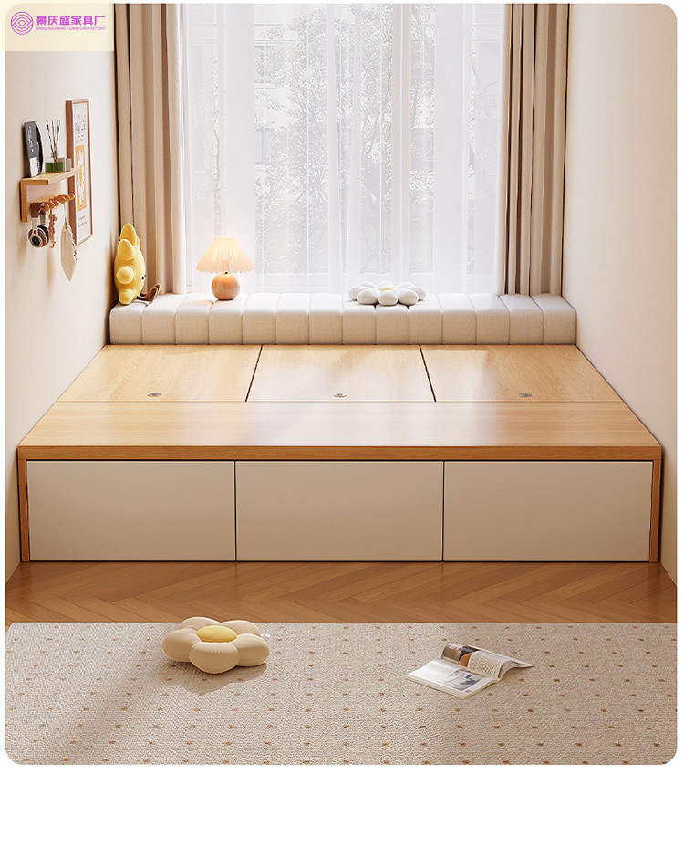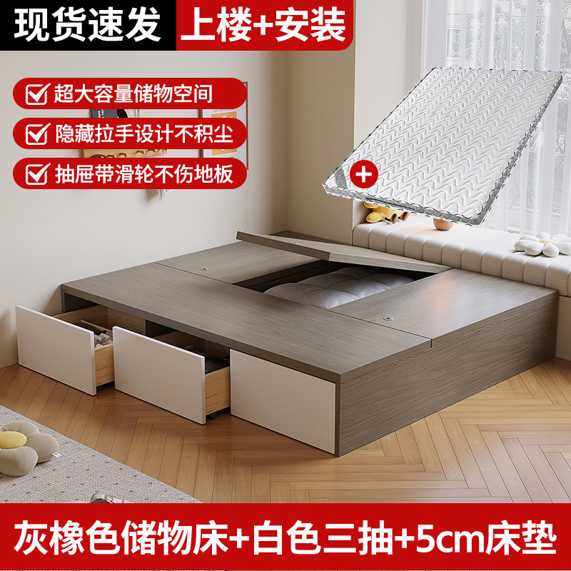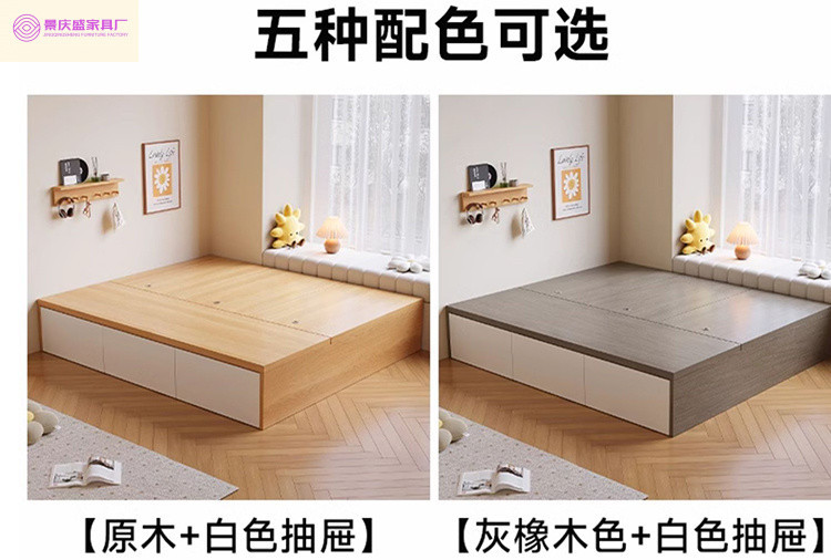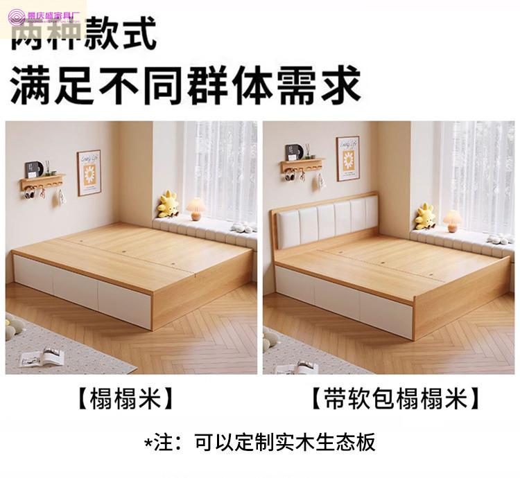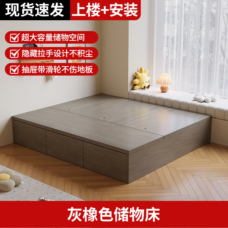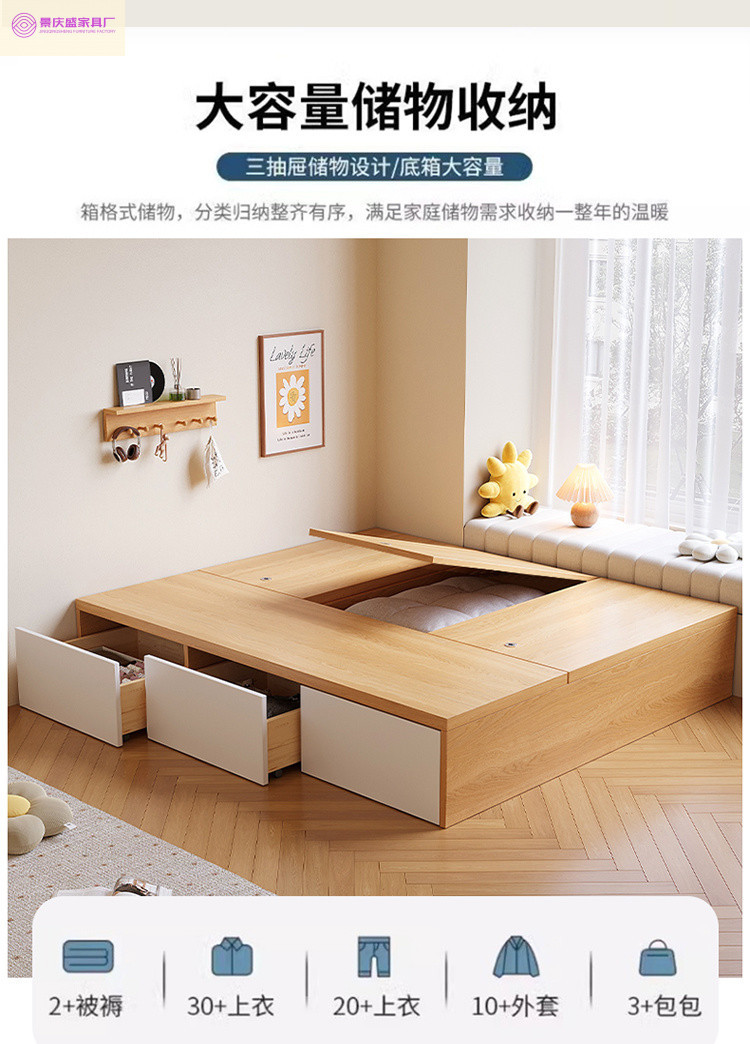 원목 침대, 모던하고 심플한 수납 더블 침대, 하이박스, 침대 옆 수납 없음, 소형 다다미 싱글 침대스토어 가기