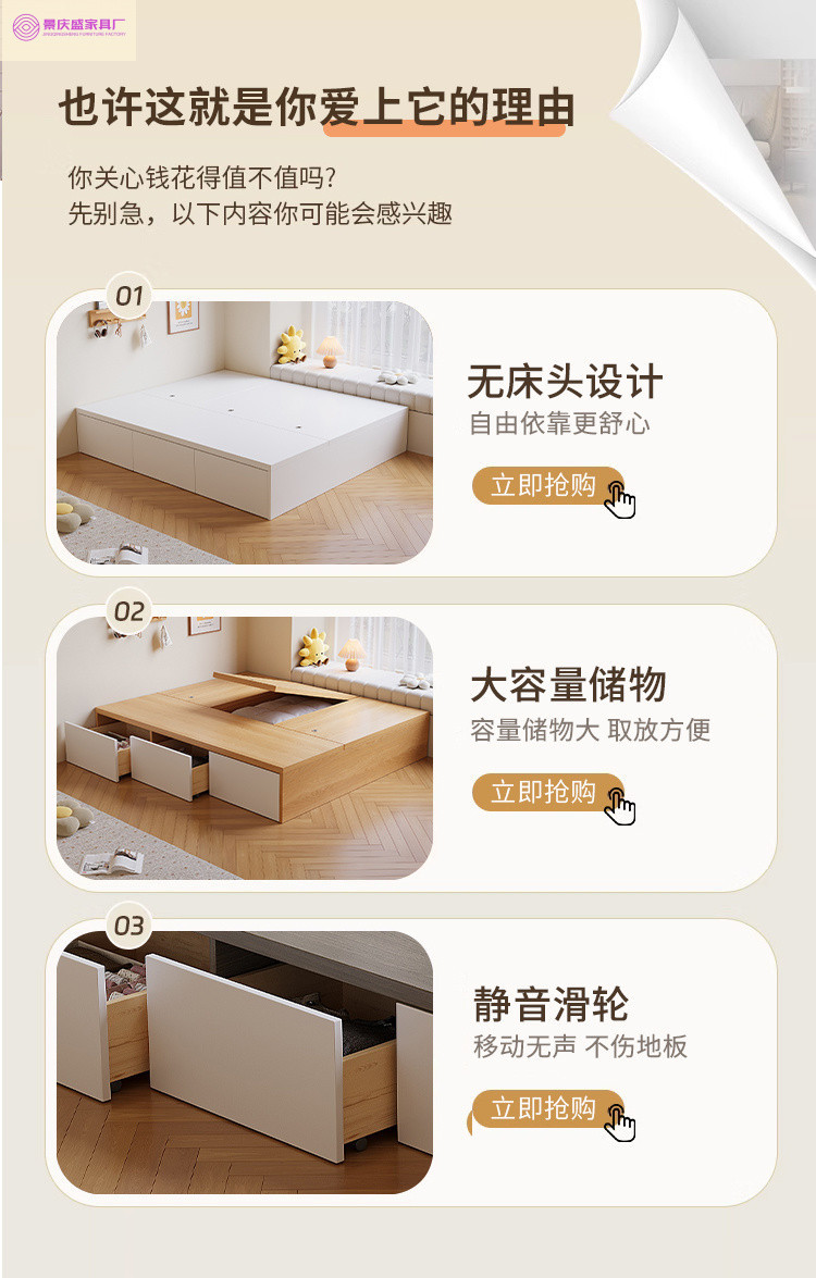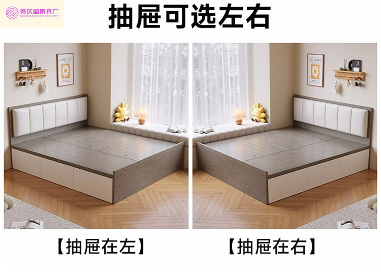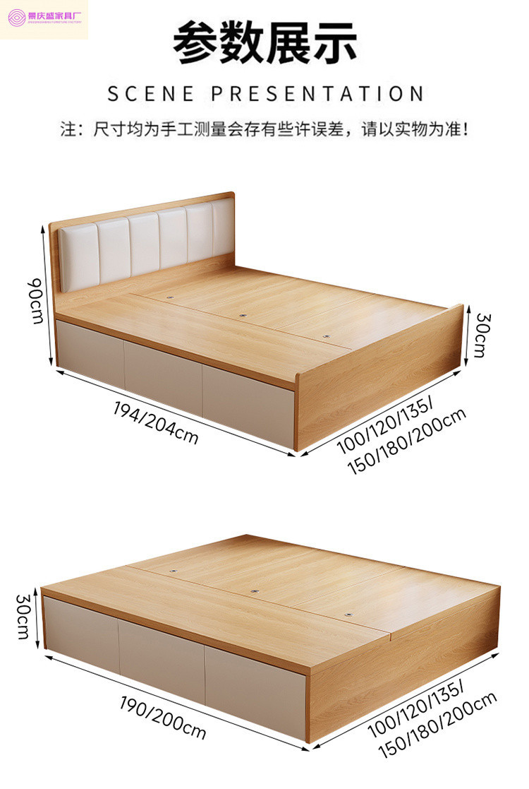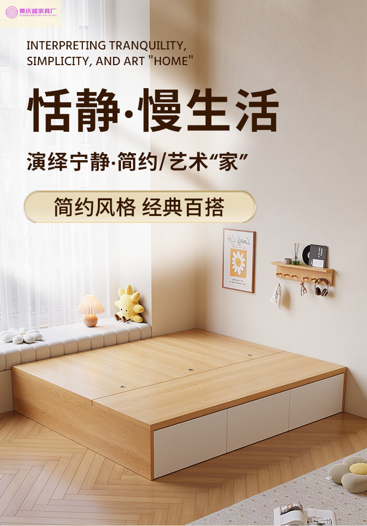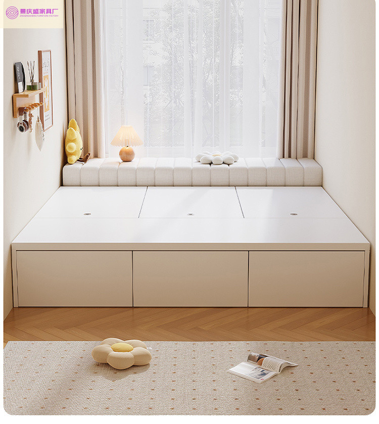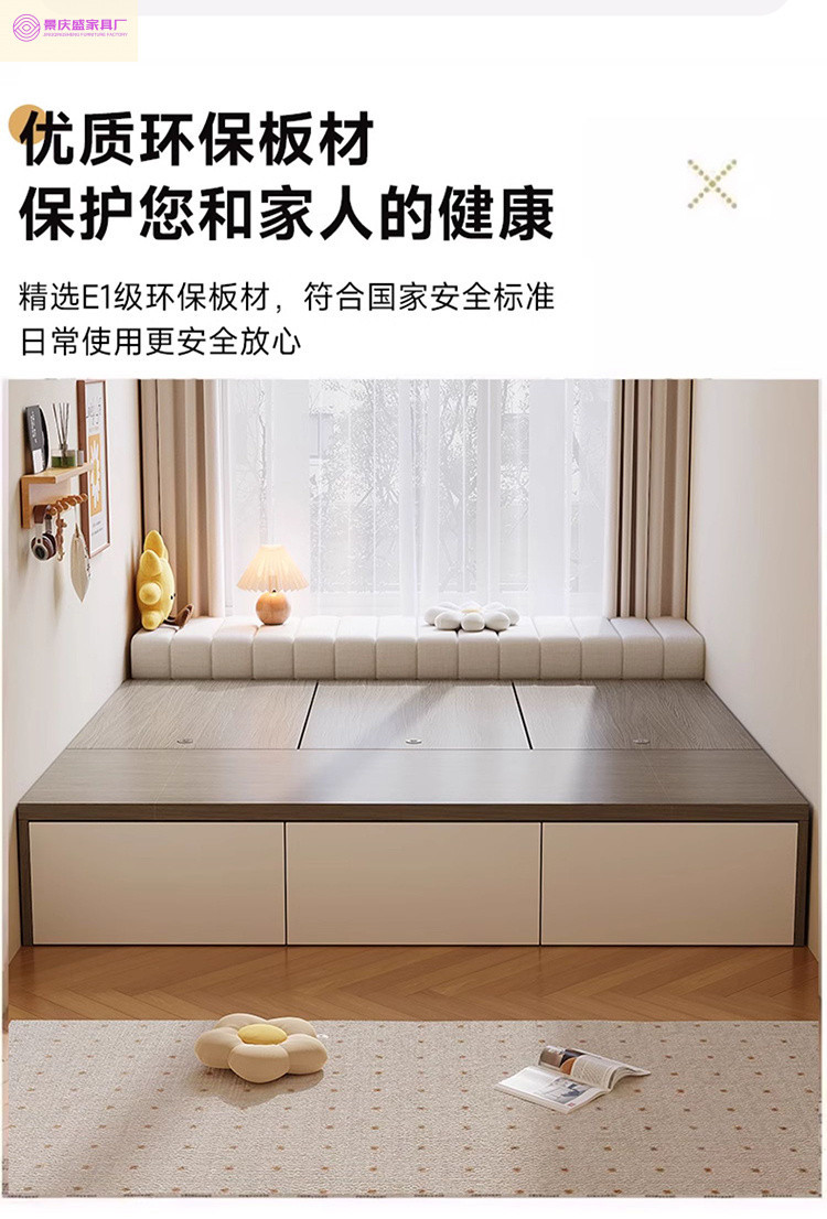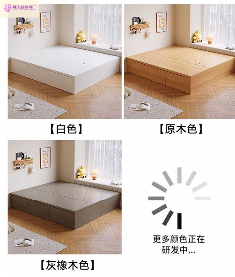 원목 침대, 모던하고 심플한 수납 더블 침대, 하이박스, 침대 옆 수납 없음, 소형 다다미 싱글 침대스토어 가기
