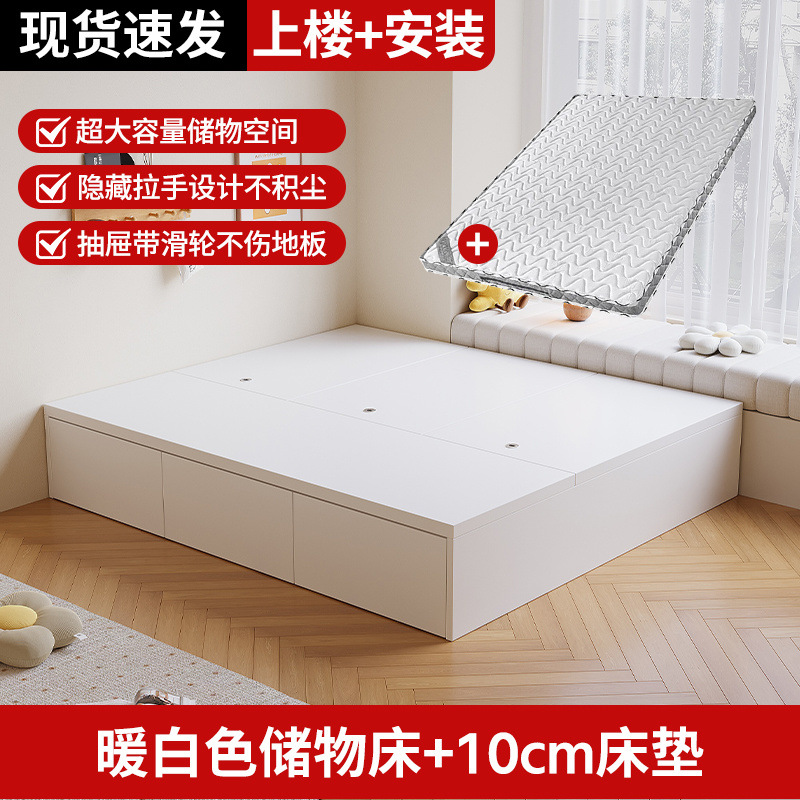• [설치 패키지] 우드 컬러 + 화이트 서랍 수납 침대 + 10cm 매트리스