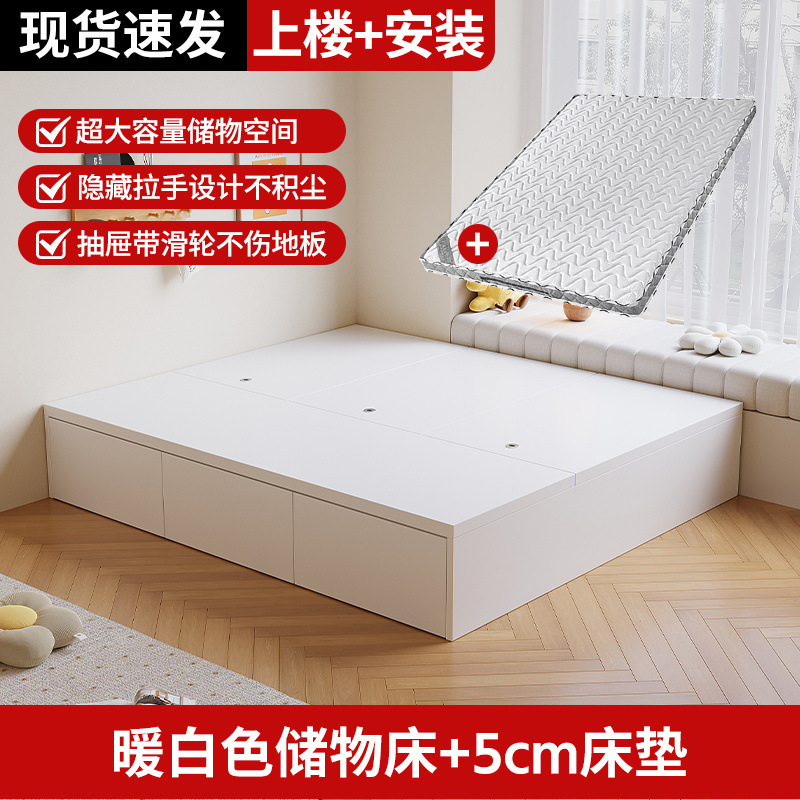 • [설치 패키지] 오리지널 우드 컬러 + 화이트 서랍 수납 침대 + 5cm 매트리스