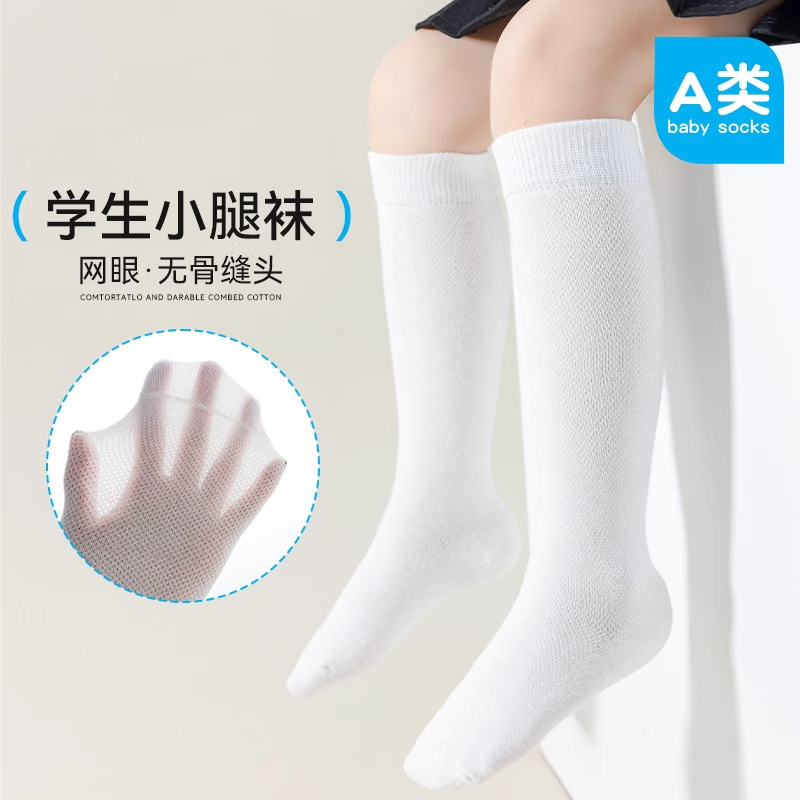 어린이 스타킹 여름 얇은면 양말 소년과 소녀 종아리 양말 땀 흡수 뼈없는 메쉬 통기성 소녀 학생 양말