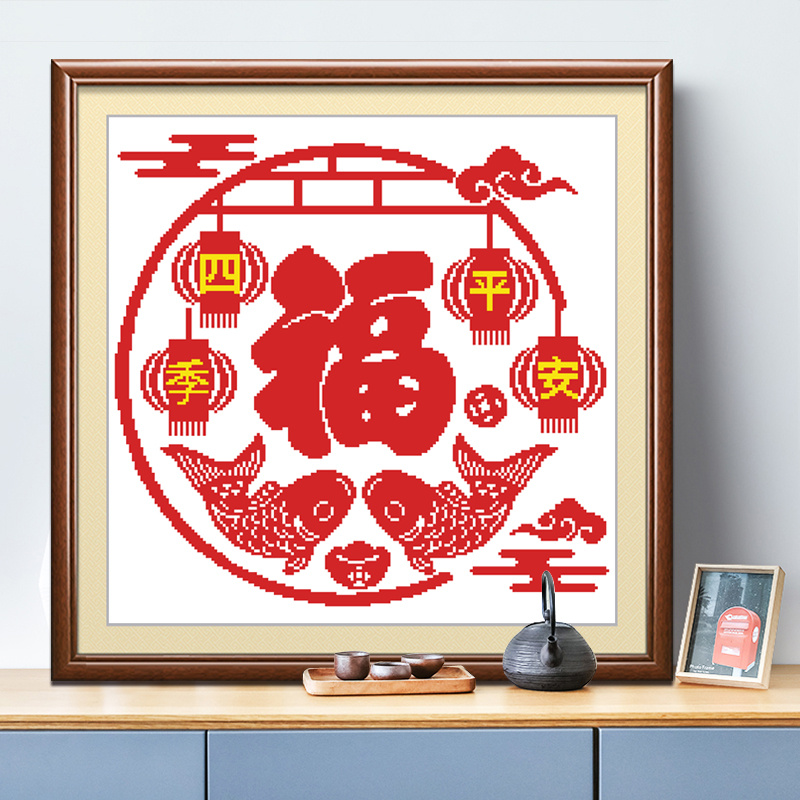 크로스 스티치 2025 새로운 포춘 라인 자수 포시즌 핑 거실 새로운 중국 장식 그림 간단한 자수 수제 자수스토어 가기