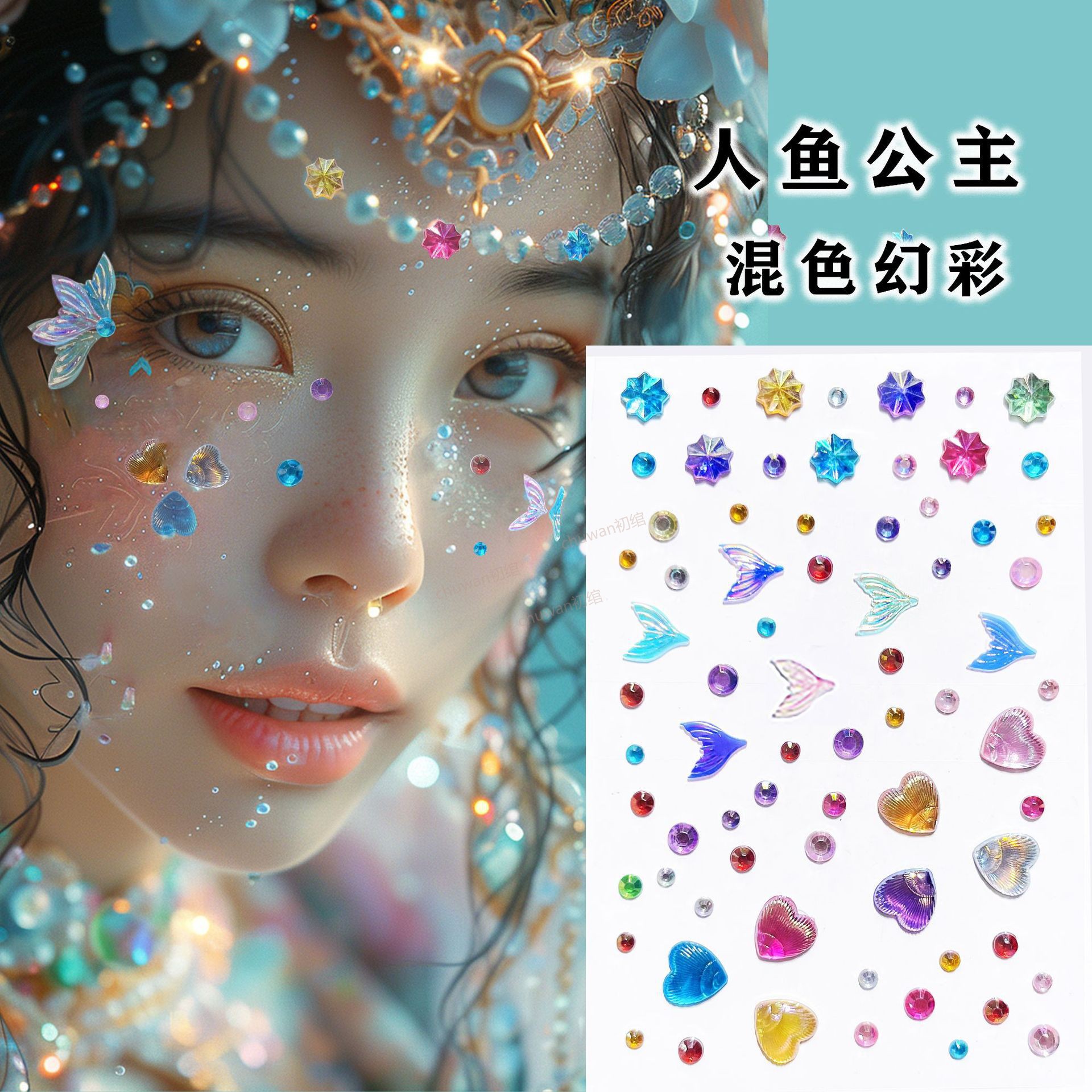 어린이 얼굴 메이크업 장식 자체 접착 다이아몬드 스티커 다이아몬드 스티커 인어 나비 공주 특별한 모양의 별과 달 다채로운 다이아몬드