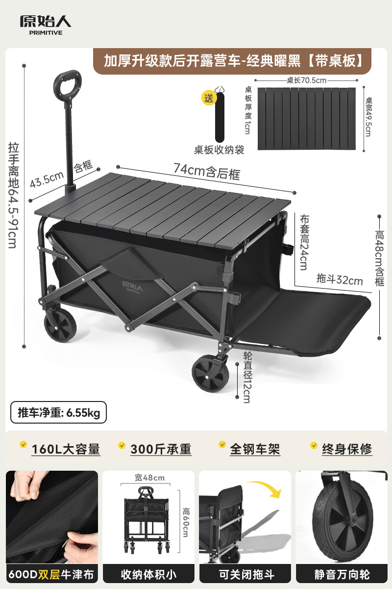 원시인 캠핑 카트 야외 캠프 캠핑 핸드 푸시 접이식 피크닉 카트 소형 트레일러 트레일러 캠핑 카트스토어 가기