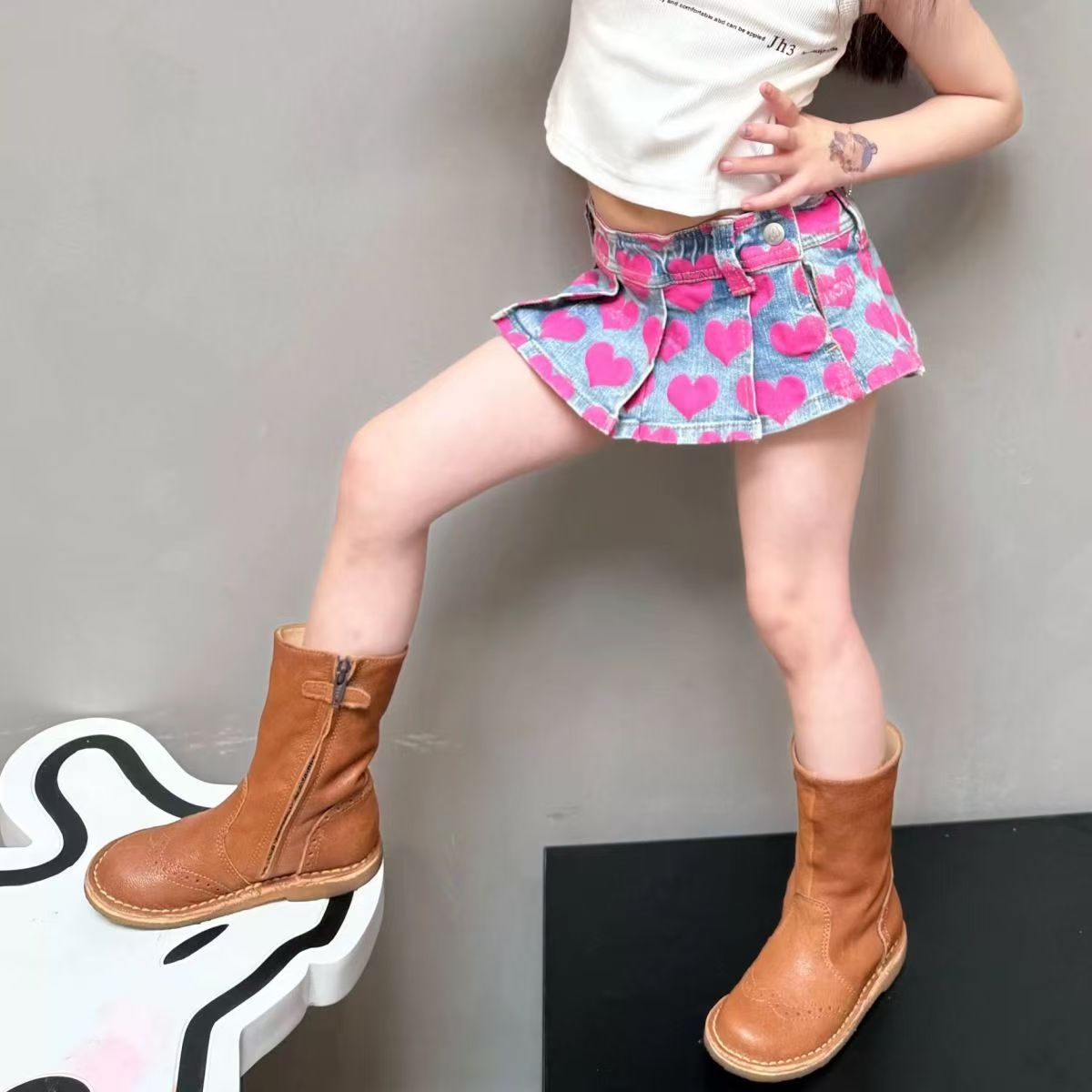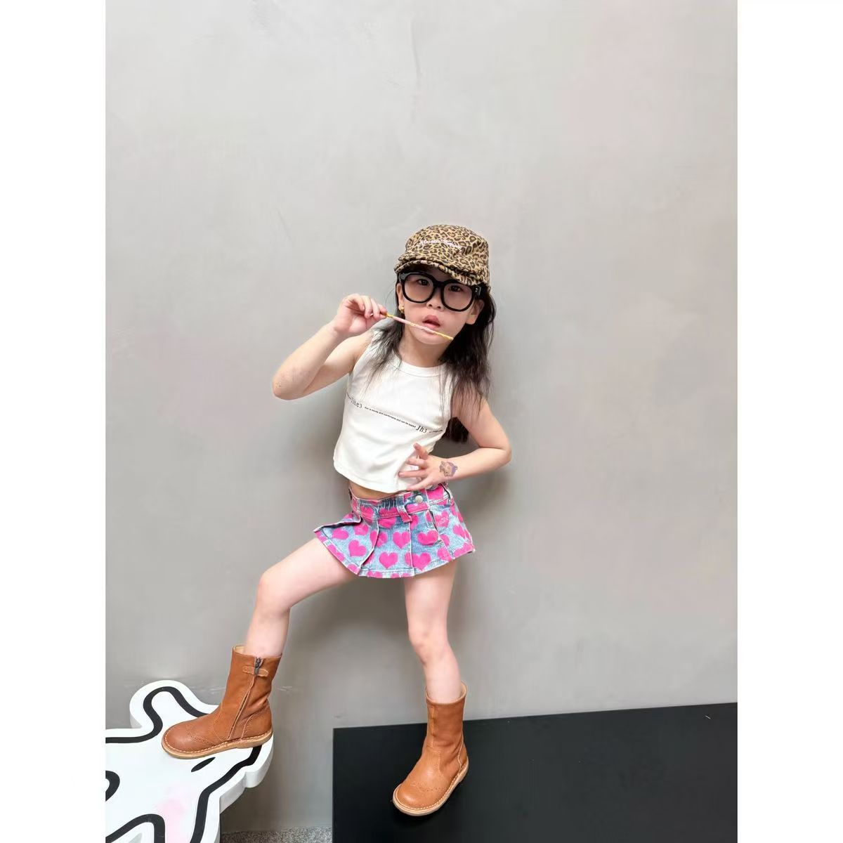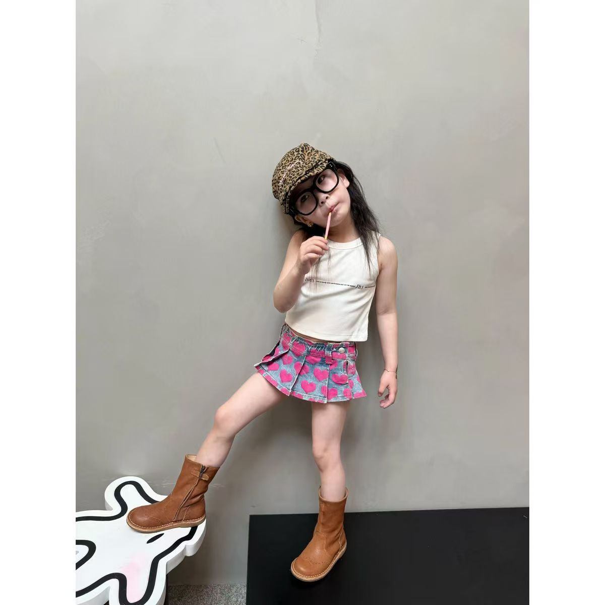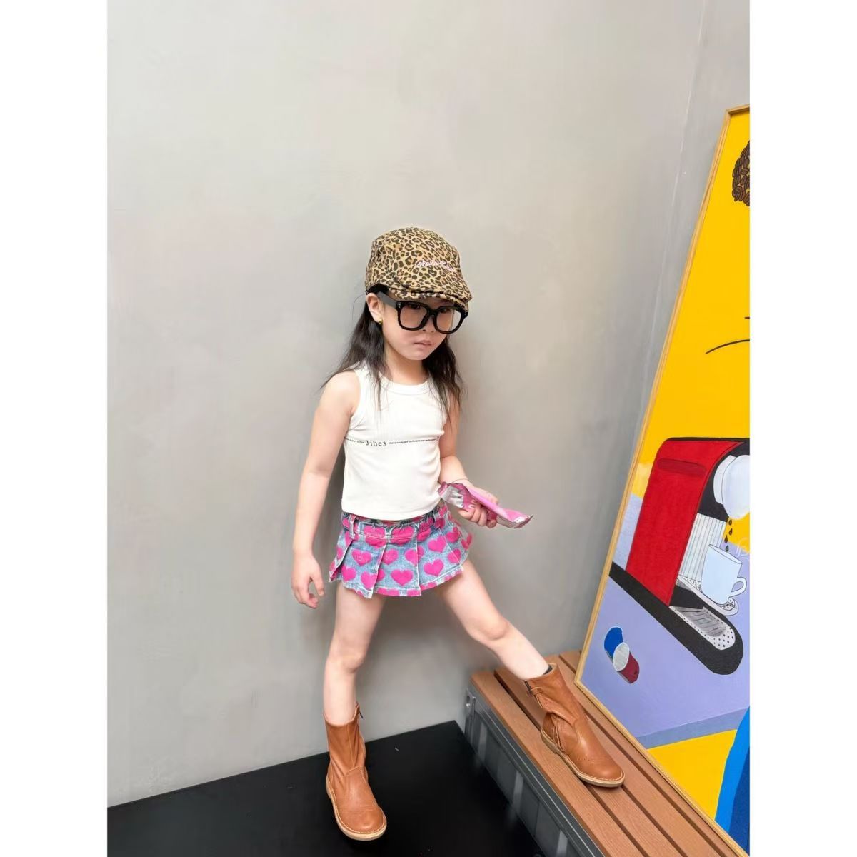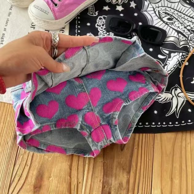 여아 2025 여름 새 스타일 도파민 프린트 러브 데님 스커트 여아 맞춤형 다용도 스커트 바지 트렌디