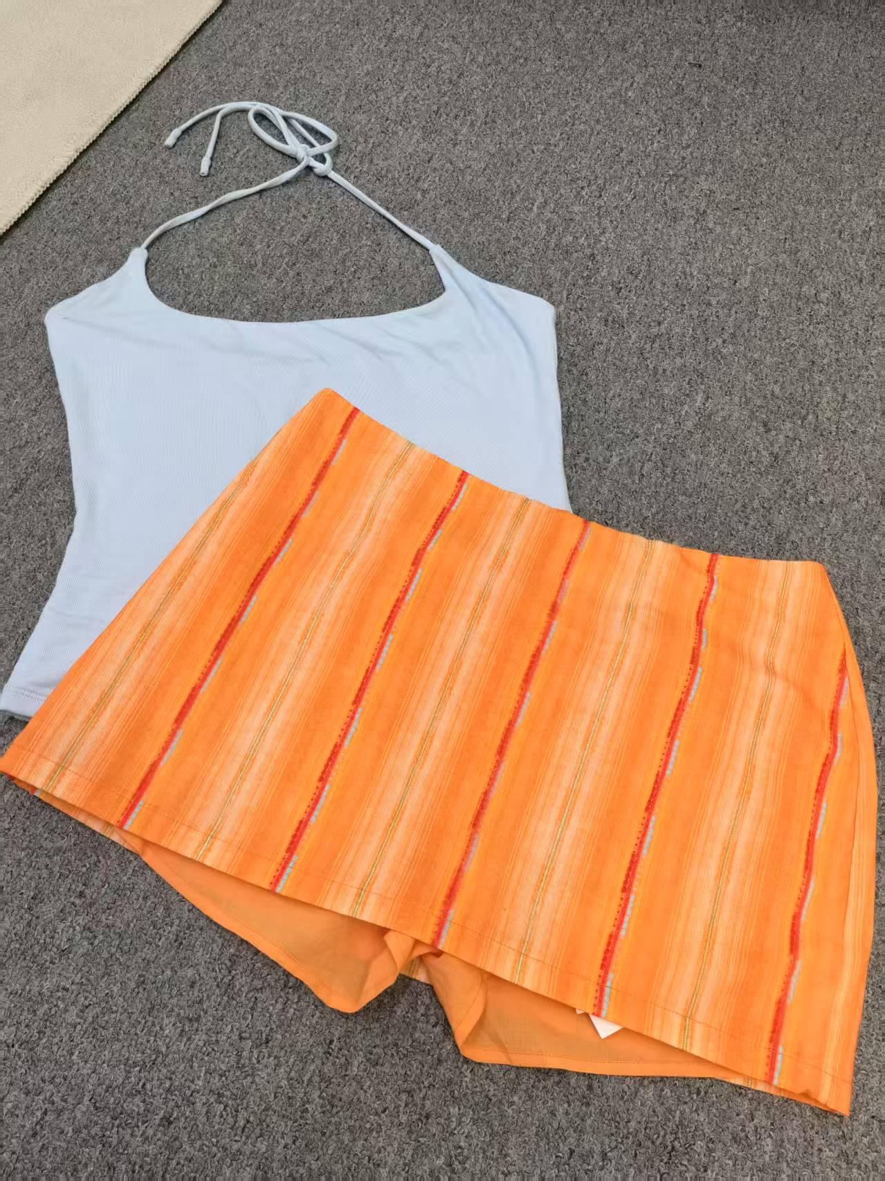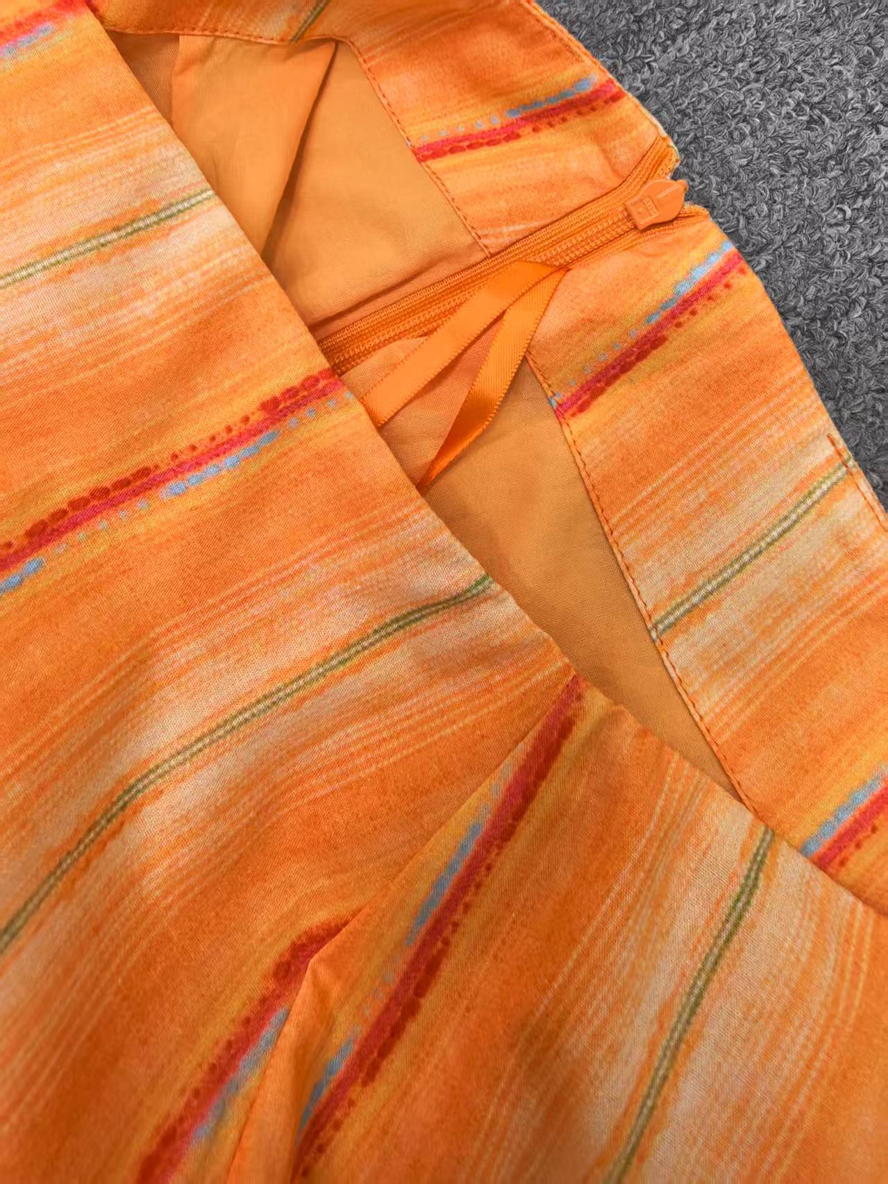 복원 버전 오렌지 체크 무늬 100 순면 세로 스트립 프린트 레트로 슬리밍 스커트 안전 바지가 있는 미니 스커트