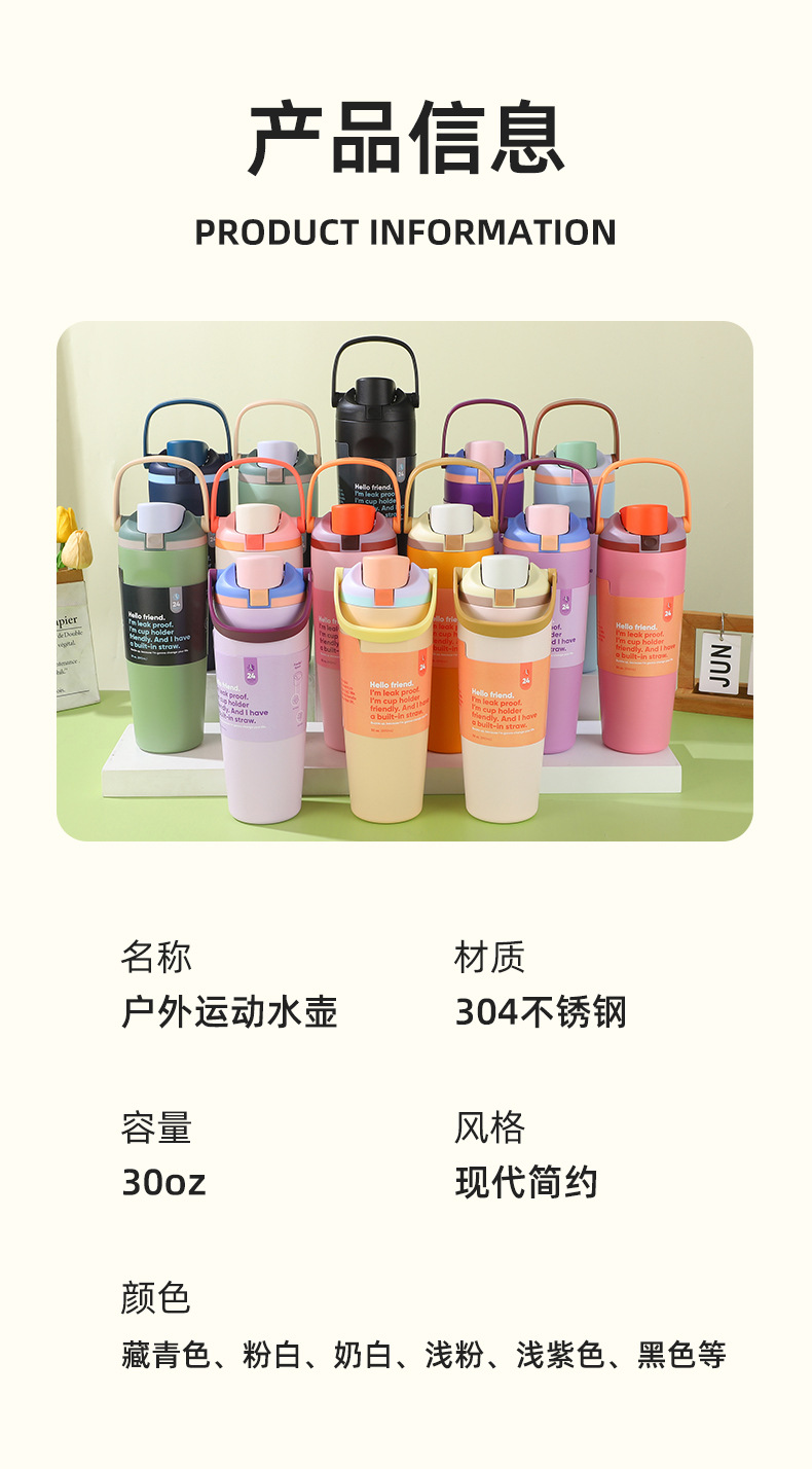 새로운 FreeSip30oz 대용량 손잡이형 304 스테인리스 이중 음료 보온병 휴대용 빨대 스포츠 컵
