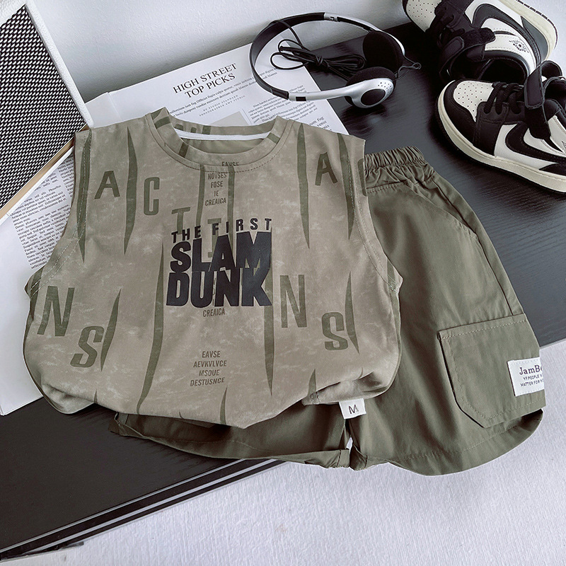남학생 조끼 세트 서양식 새로운 2025 여름 허리 코트 아기 인쇄 민소매 아동복 얇은 투피스 유행 세트스토어 가기