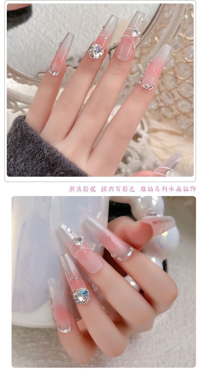 인기 있는 네일 아트 액세서리, 가벼운 럭셔리, 뚱뚱한 사각형, 손으로 쌓은 다이아몬드 볼, 완제품, 인터넷 연예인 슈퍼 플래시 크리스탈 합금 다이아몬드 네일 액세서리스토어 가기