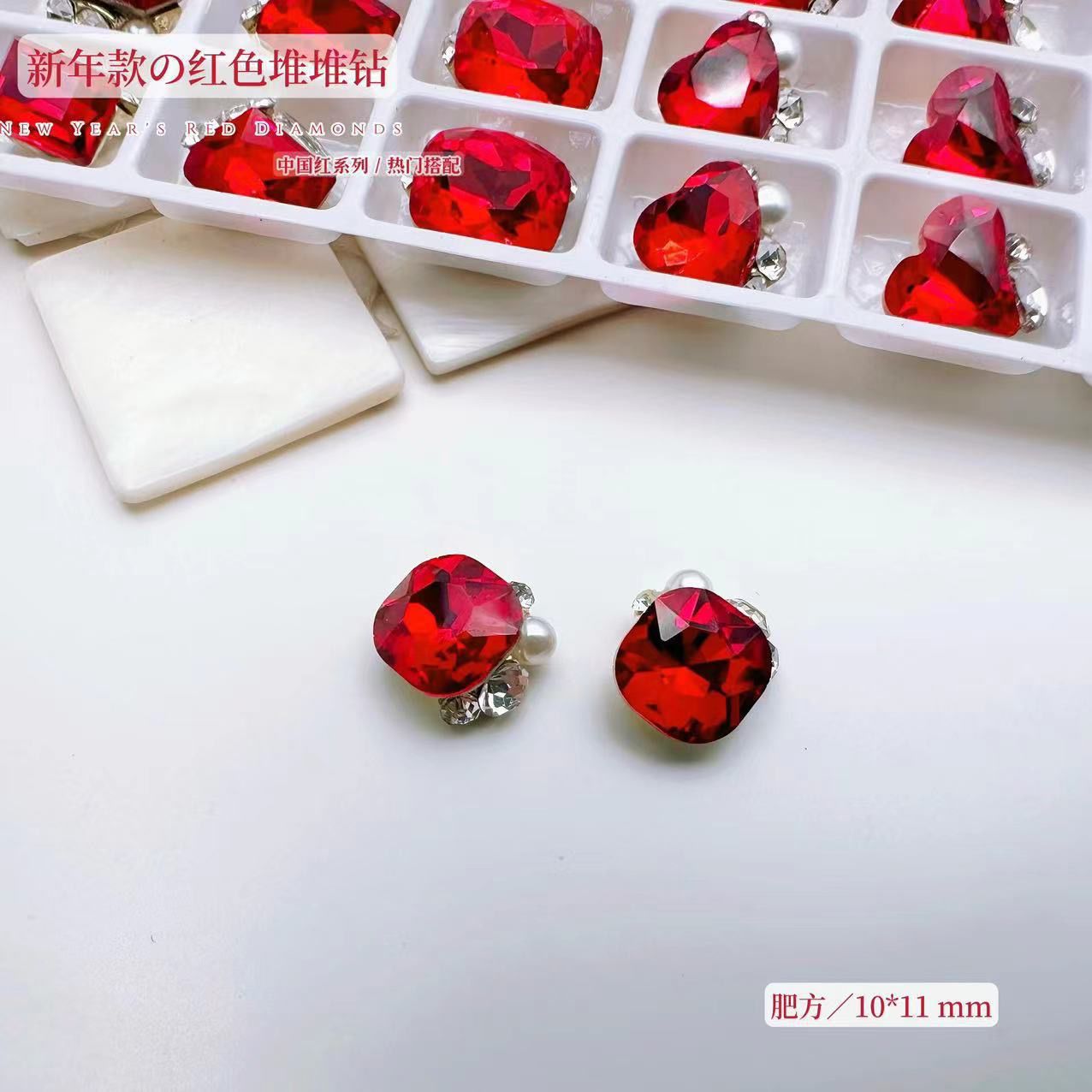인기 있는 네일 아트 액세서리, 가벼운 럭셔리, 뚱뚱한 사각형, 손으로 쌓은 다이아몬드 볼, 완제품, 인터넷 연예인 슈퍼 플래시 크리스탈 합금 다이아몬드 네일 액세서리