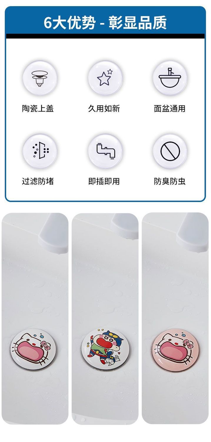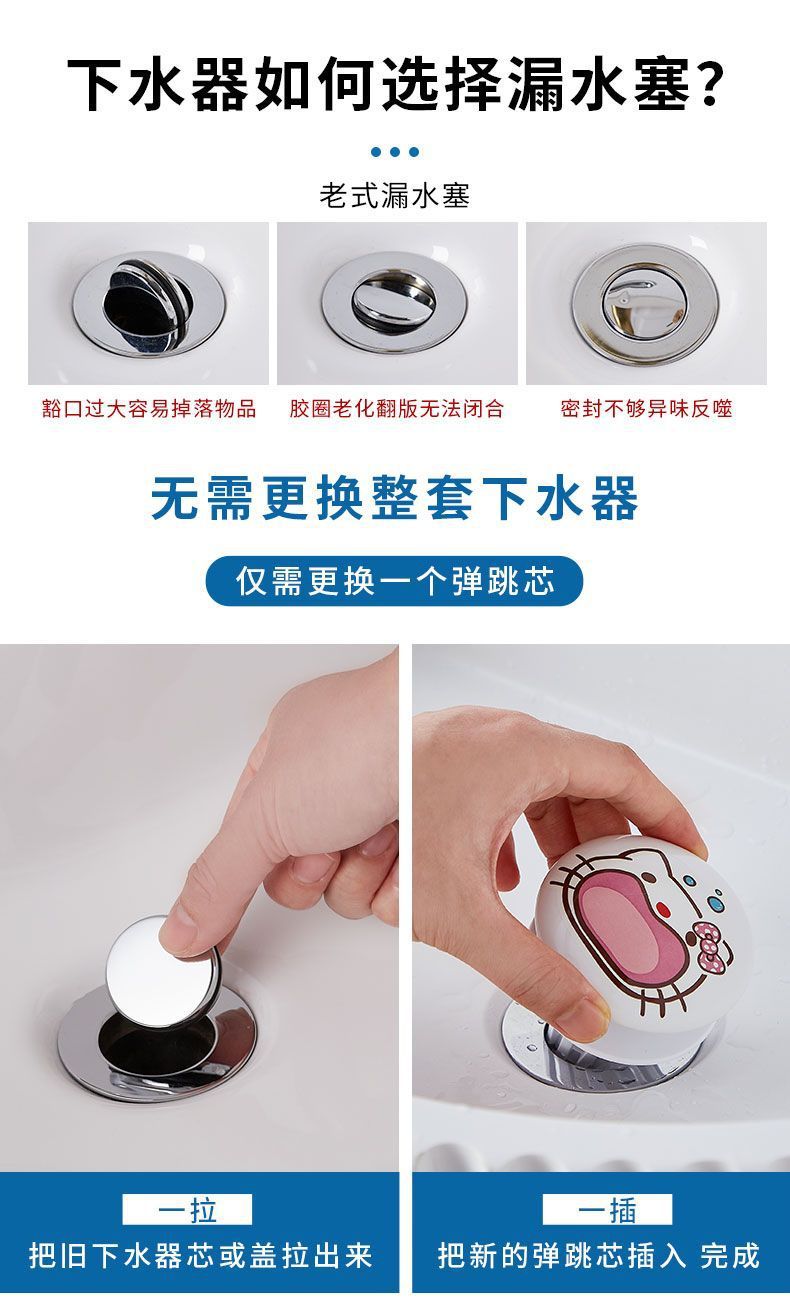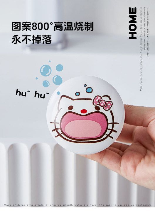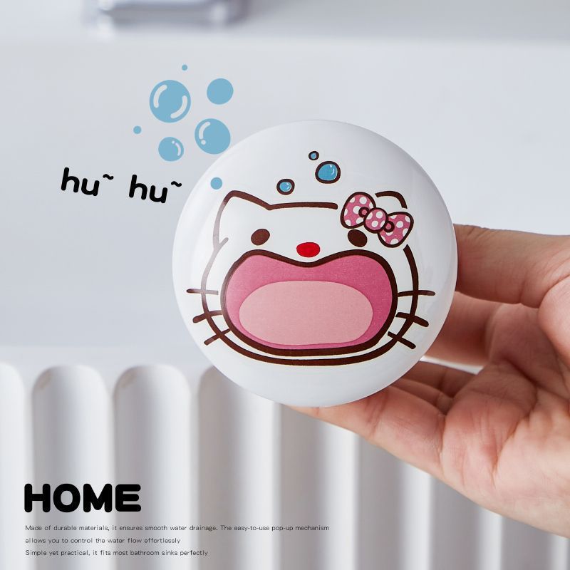 귀여운 KT 고양이 세라믹 세면대, 욕실 세면대 배수구 마개, 세면대 배수구, 창의적인 세라믹 점핑 코어