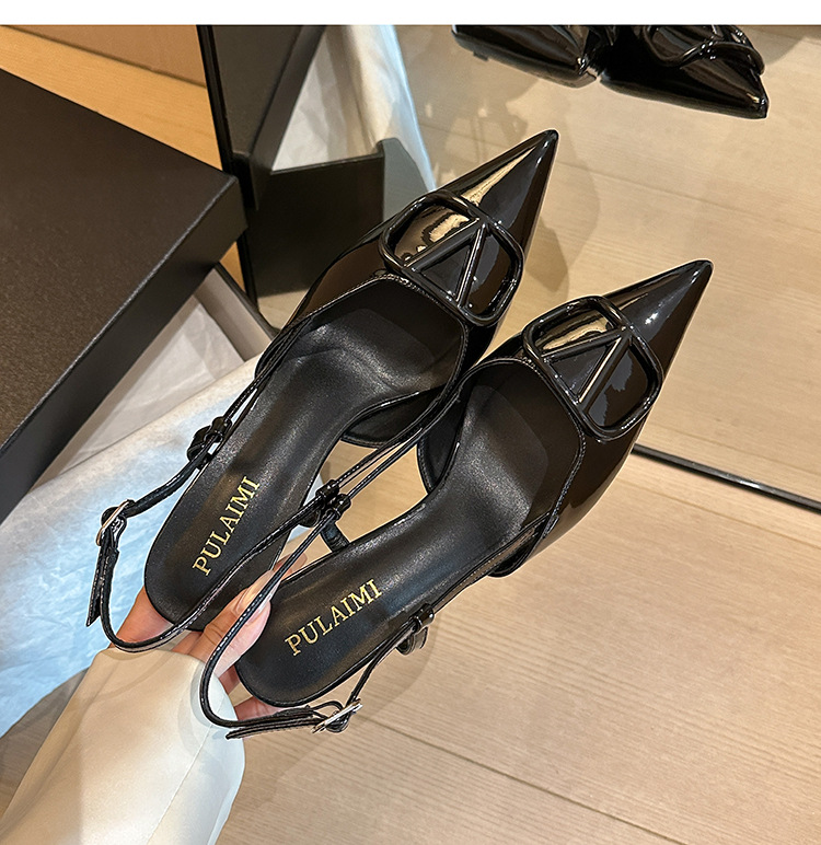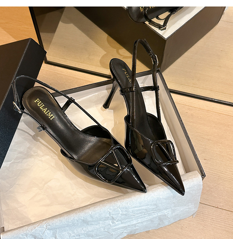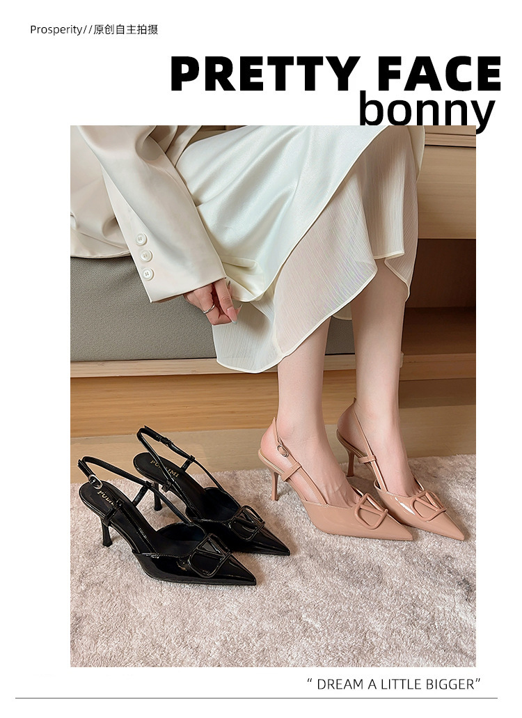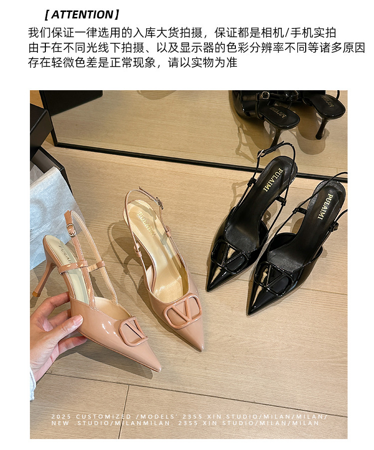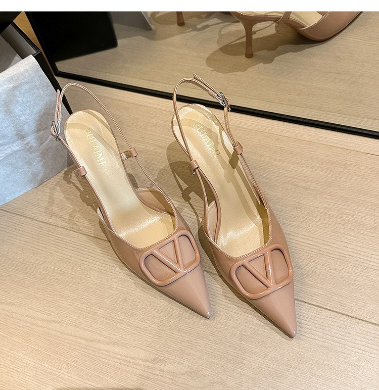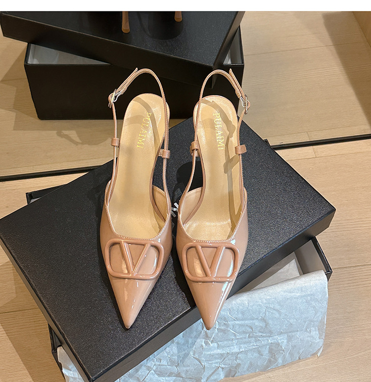 프랑스 뾰족한 발가락 V-버클 발가락 샌들 여성 여름 아웃웨어 패션 2025 새로운 여름 우아한 하이힐 빈 신발스토어 가기