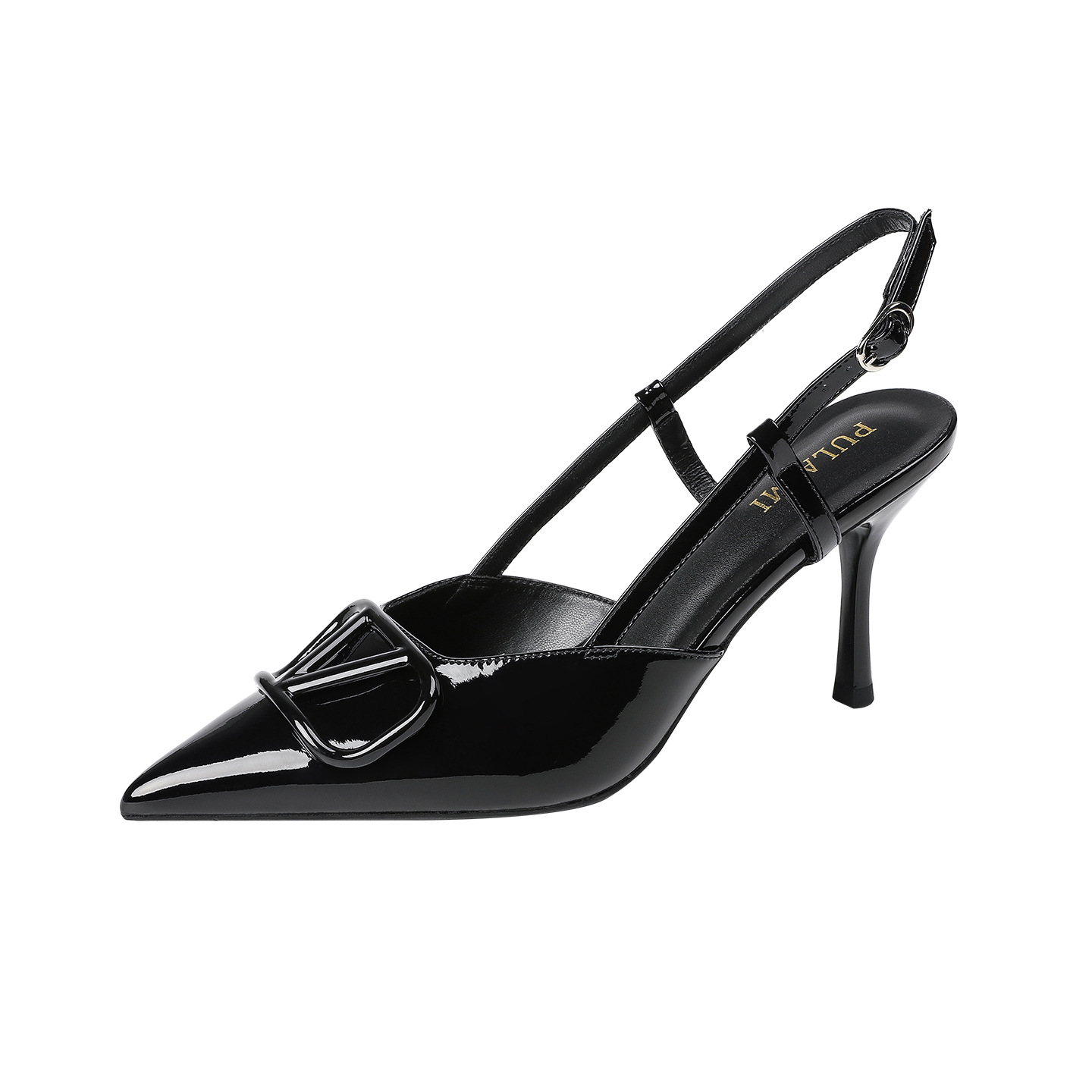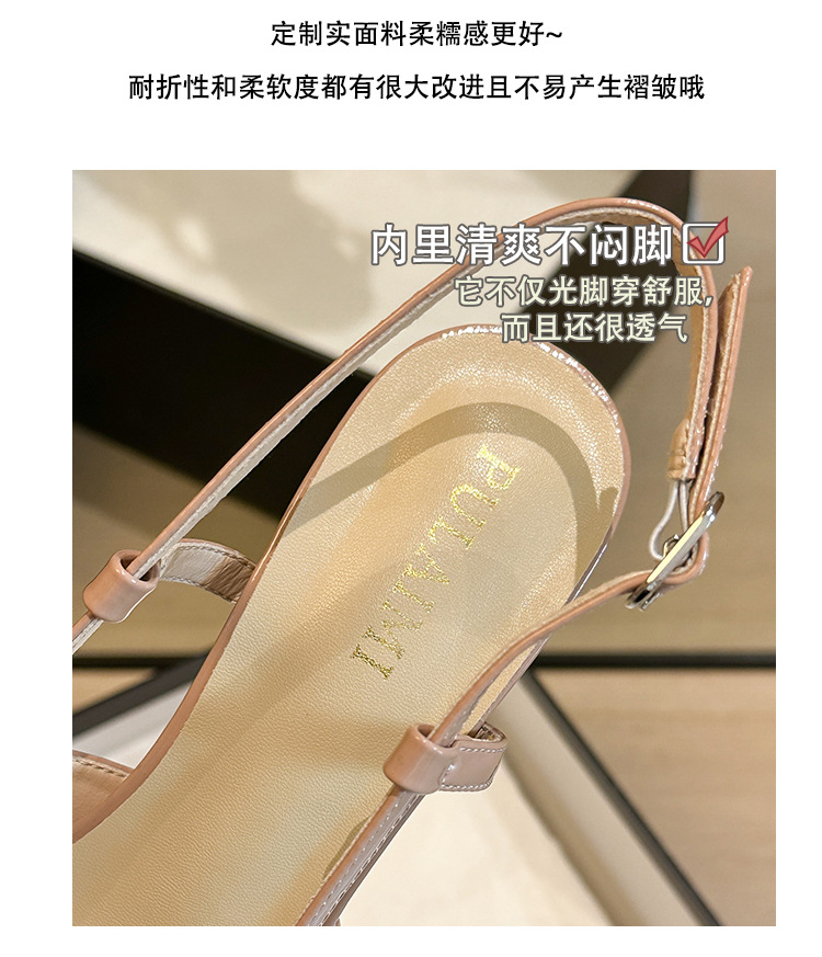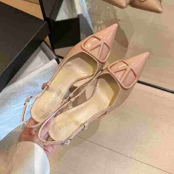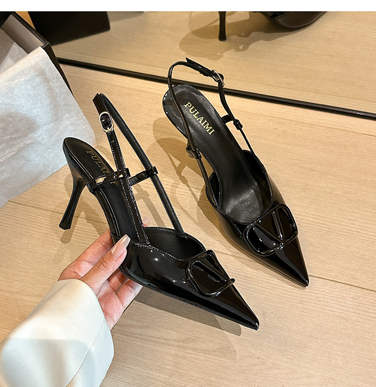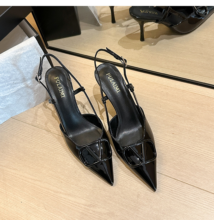 프랑스 뾰족한 발가락 V-버클 발가락 샌들 여성 여름 아웃웨어 패션 2025 새로운 여름 우아한 하이힐 빈 신발스토어 가기