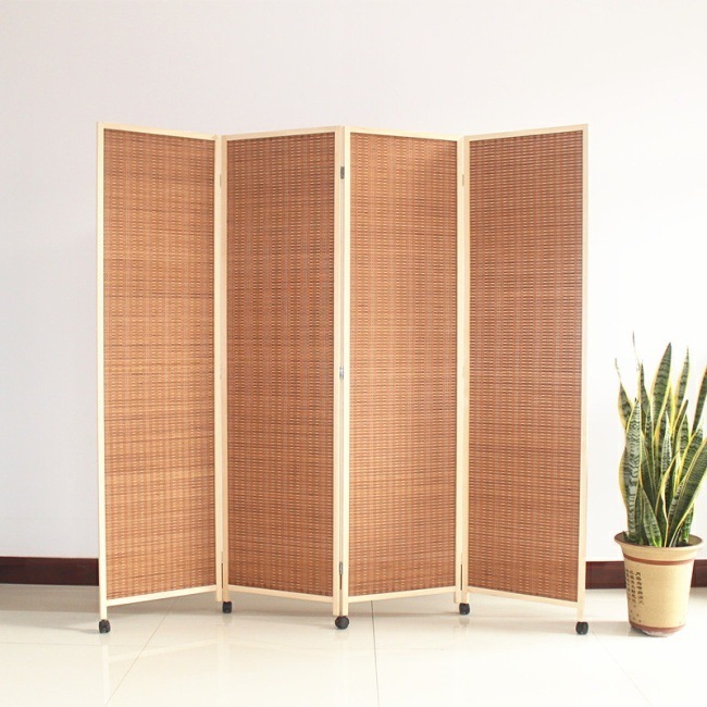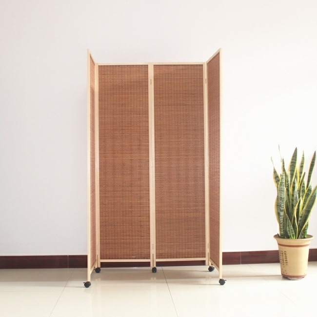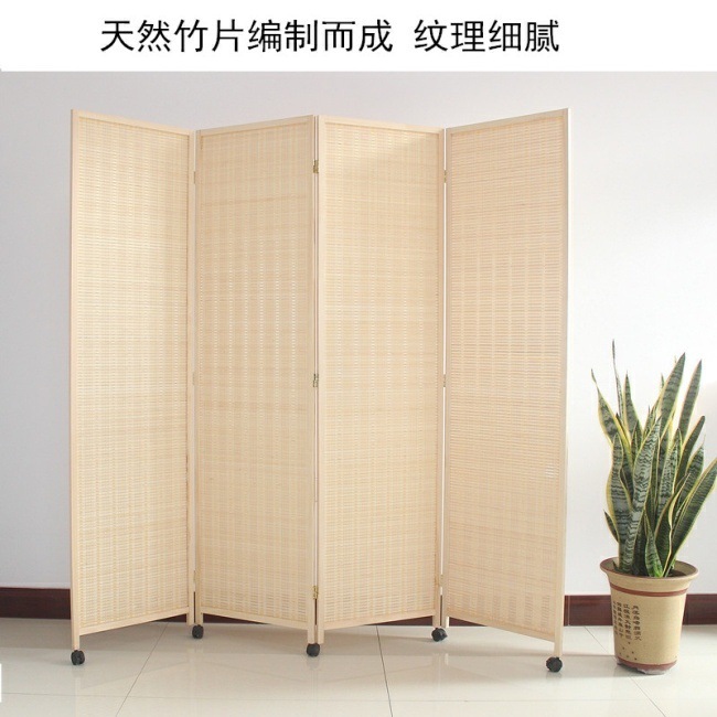 모바일 스크린 파티션 도르래 접이식 단단한 나무 대나무 간단한 사무실 레스토랑 일본식 푸시풀 접이식 스크린 바퀴 포함스토어 가기