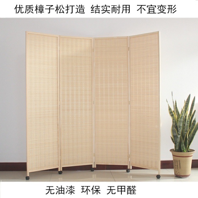 모바일 스크린 파티션 도르래 접이식 단단한 나무 대나무 간단한 사무실 레스토랑 일본식 푸시풀 접이식 스크린 바퀴 포함
