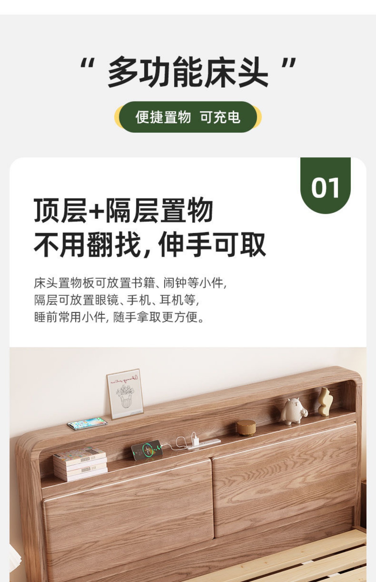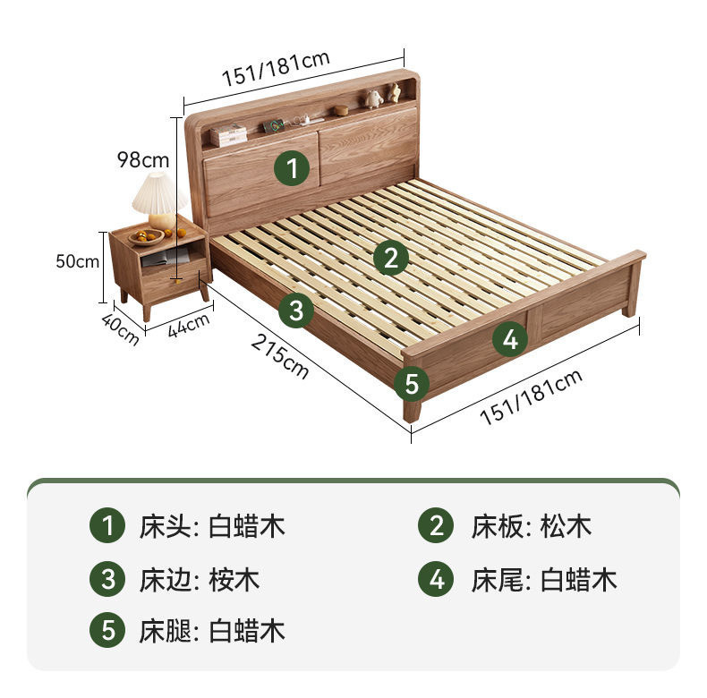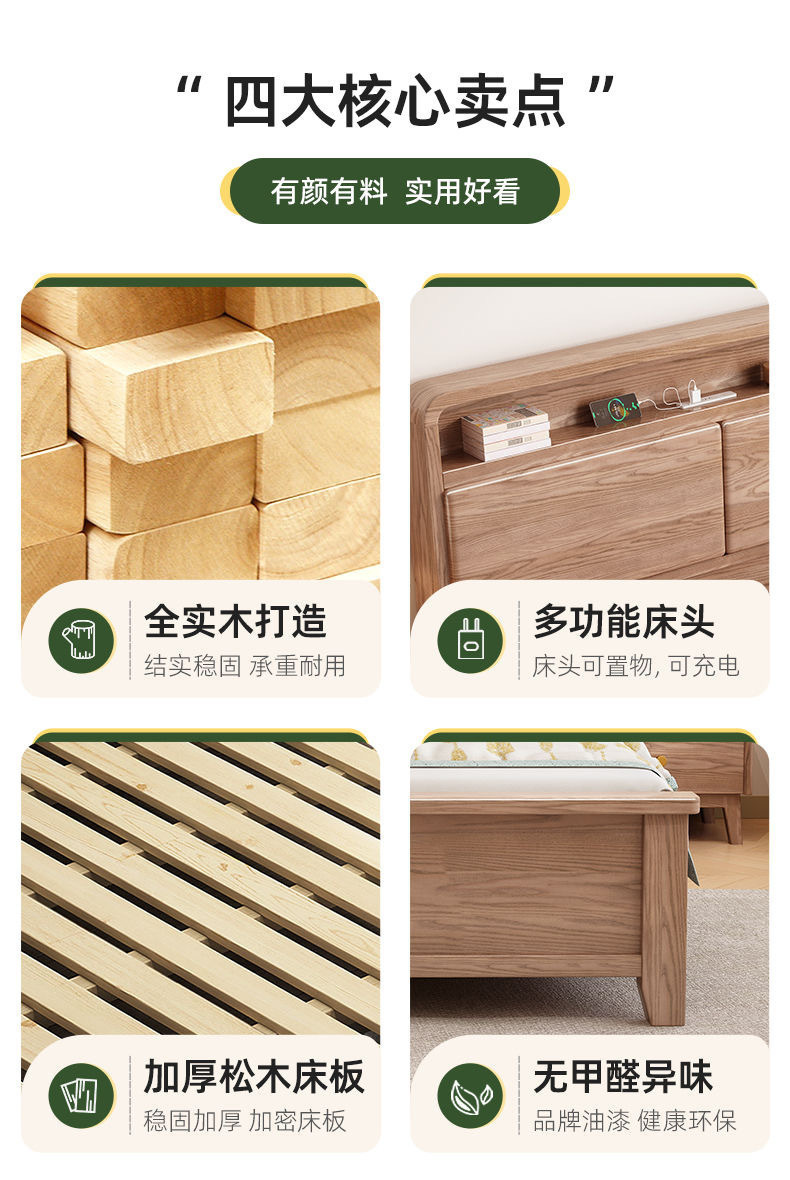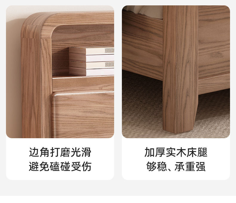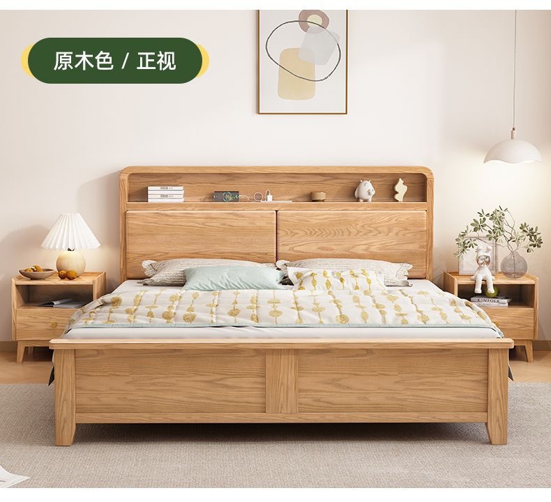 북유럽 스타일 화이트 왁스 우드 원목 침대 모던 1.8m 마스터 침실 더블 침대 1.5m 소형 아파트용 야간 조명 수납 침대