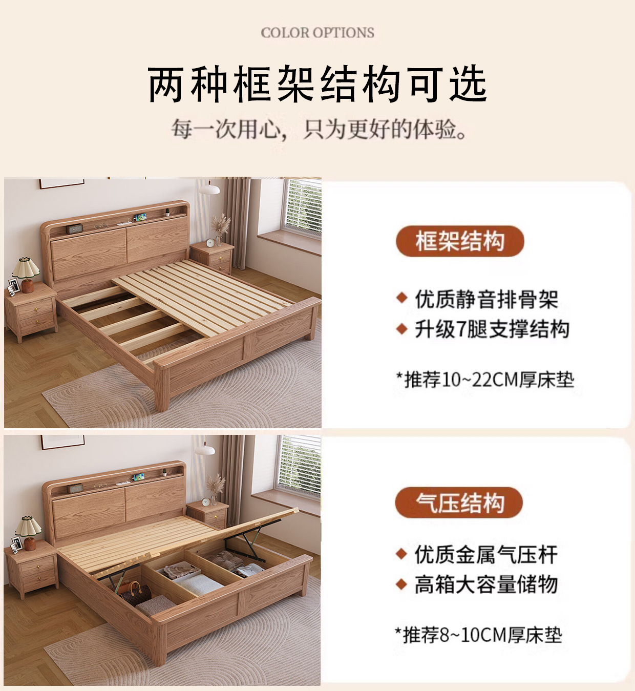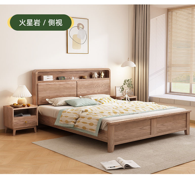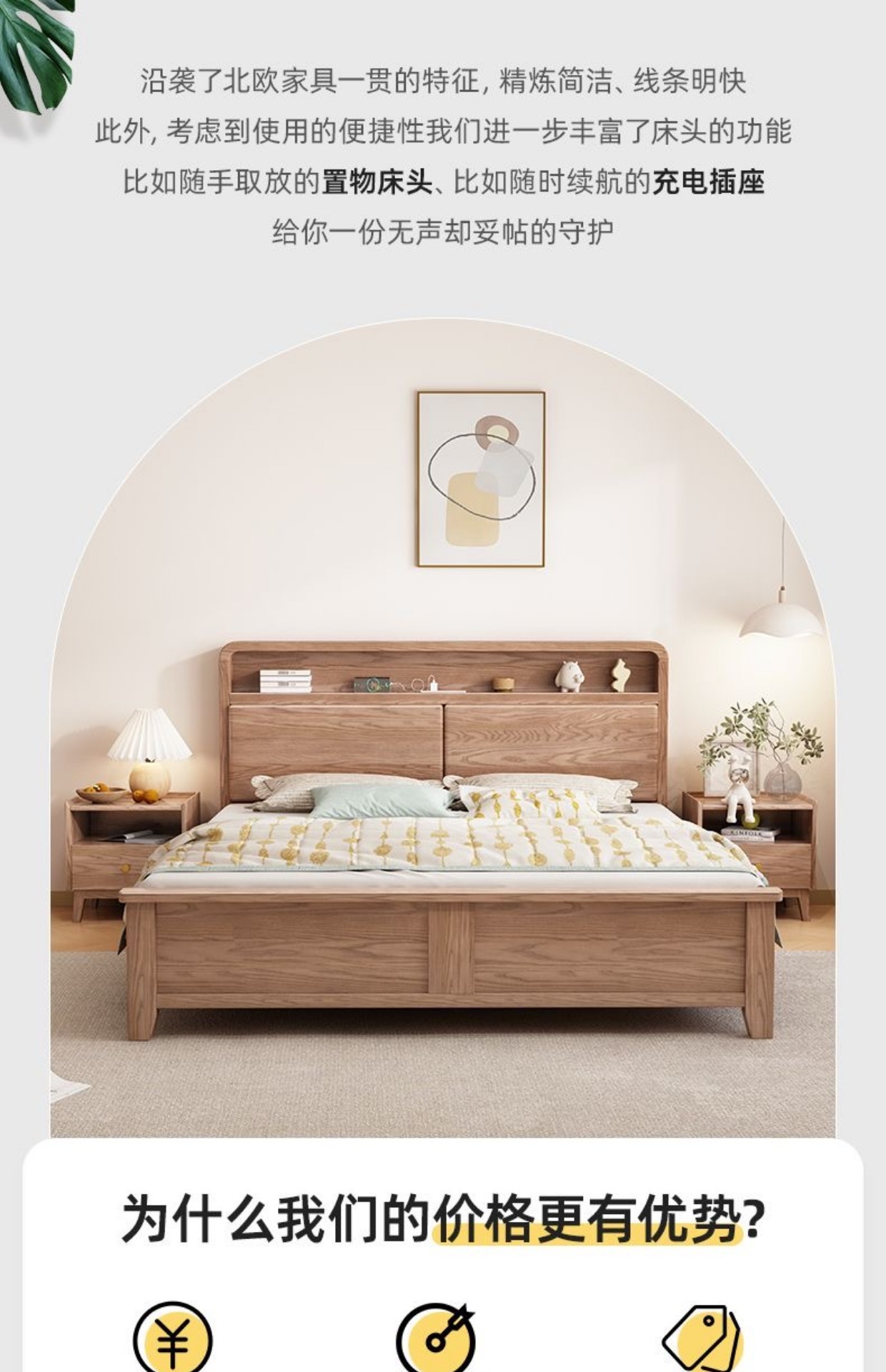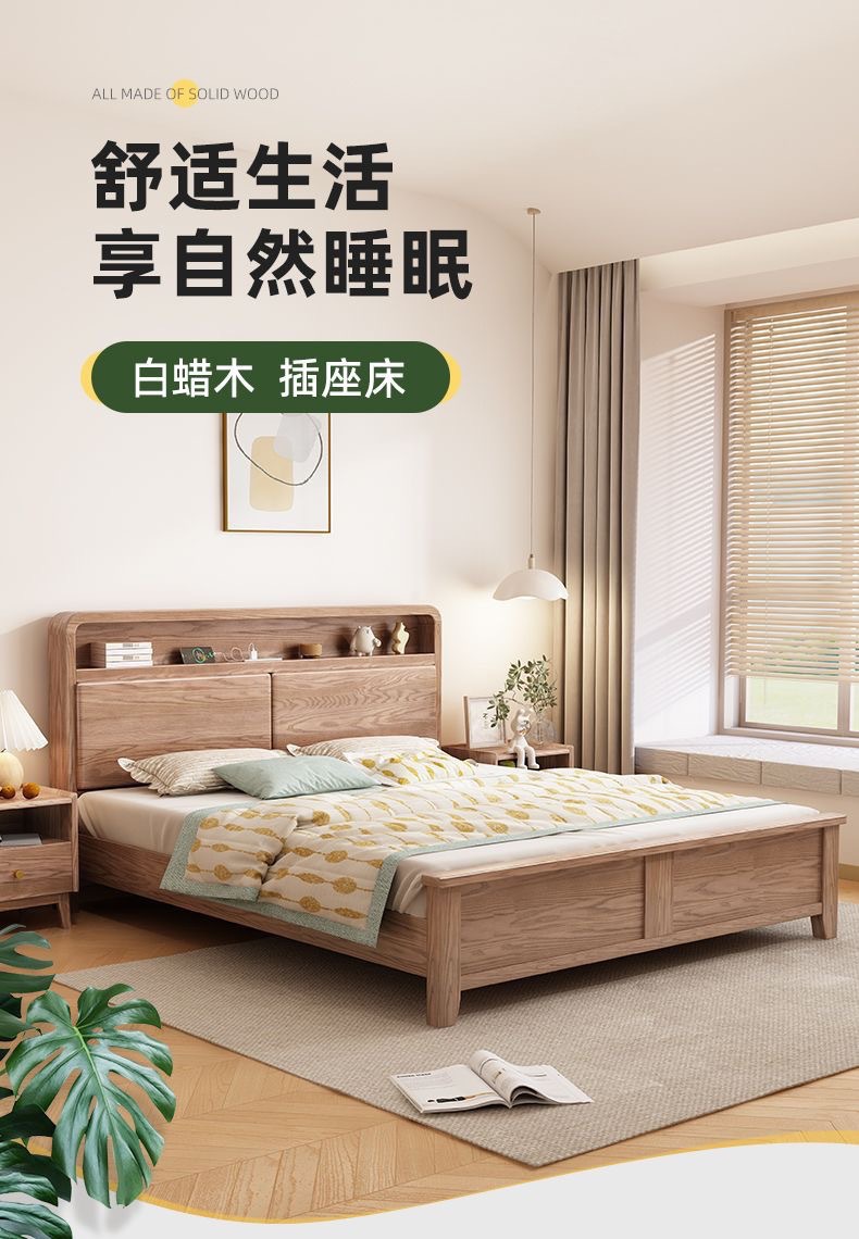 북유럽 스타일 화이트 왁스 우드 원목 침대 모던 1.8m 마스터 침실 더블 침대 1.5m 소형 아파트용 야간 조명 수납 침대스토어 가기
