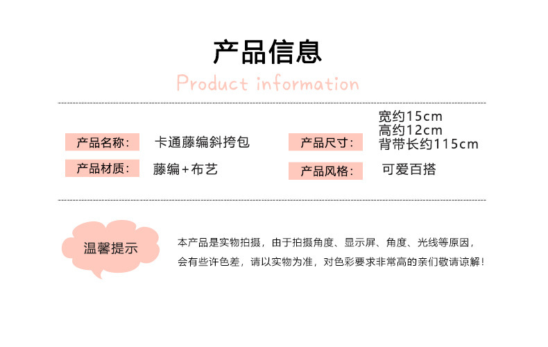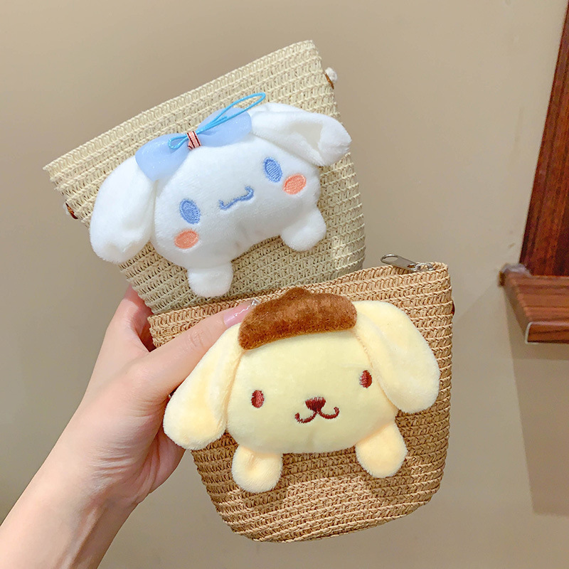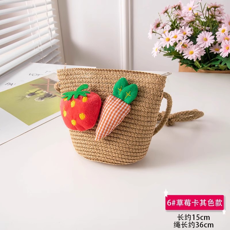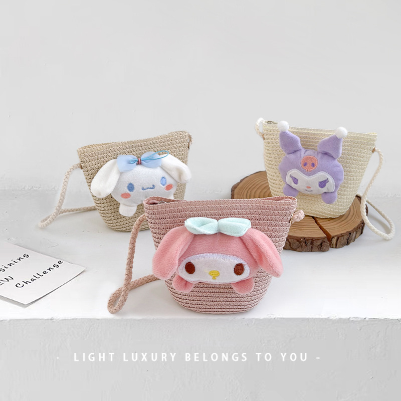 어린이 메신저 가방 소녀 가방 수제 잔디 짠 가방 소녀의 여름 귀여운 만화 Kulomi 작은 배낭스토어 가기