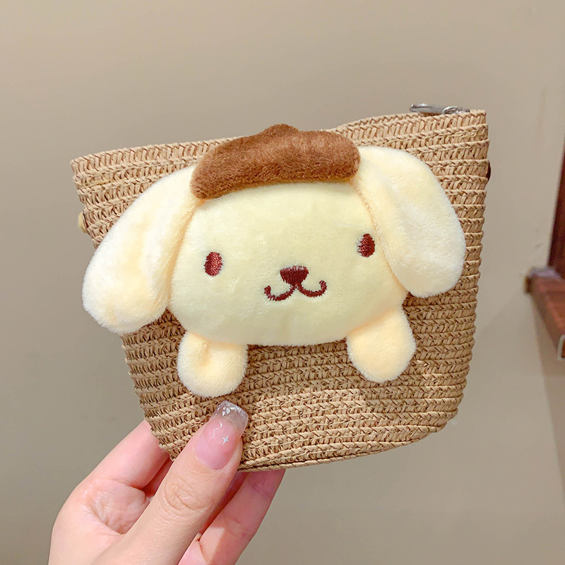 어린이 메신저 가방 소녀 가방 수제 잔디 짠 가방 소녀의 여름 귀여운 만화 Kulomi 작은 배낭