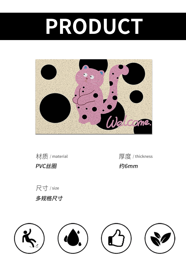 웨이브 포인트 고양이 바닥 매트는 문 문 먼지 제거 매트 가정용 문 만화 귀여운 실크 링으로 절단 할 수 있습니다.스토어 가기