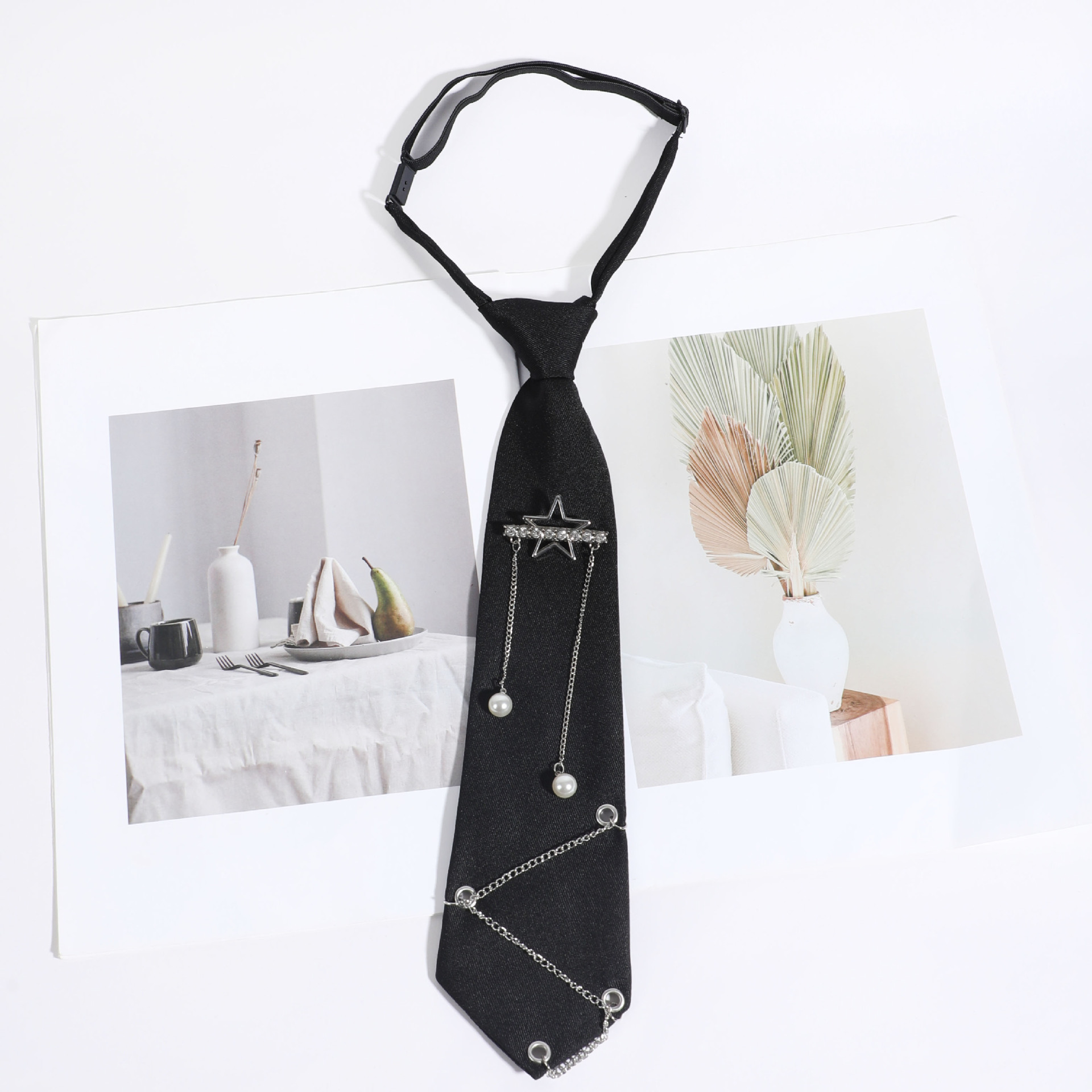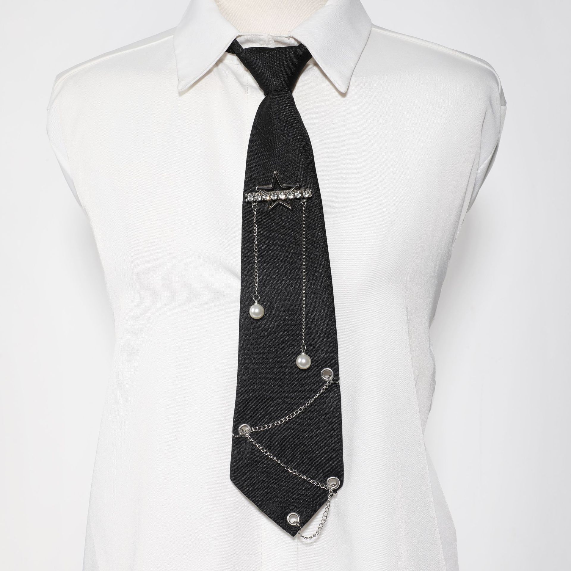국경 간 뉴 스타 보우 체인 블랙 타이 프리 JK 여성 캐주얼 파티 칼리지 스타일 남성 패션