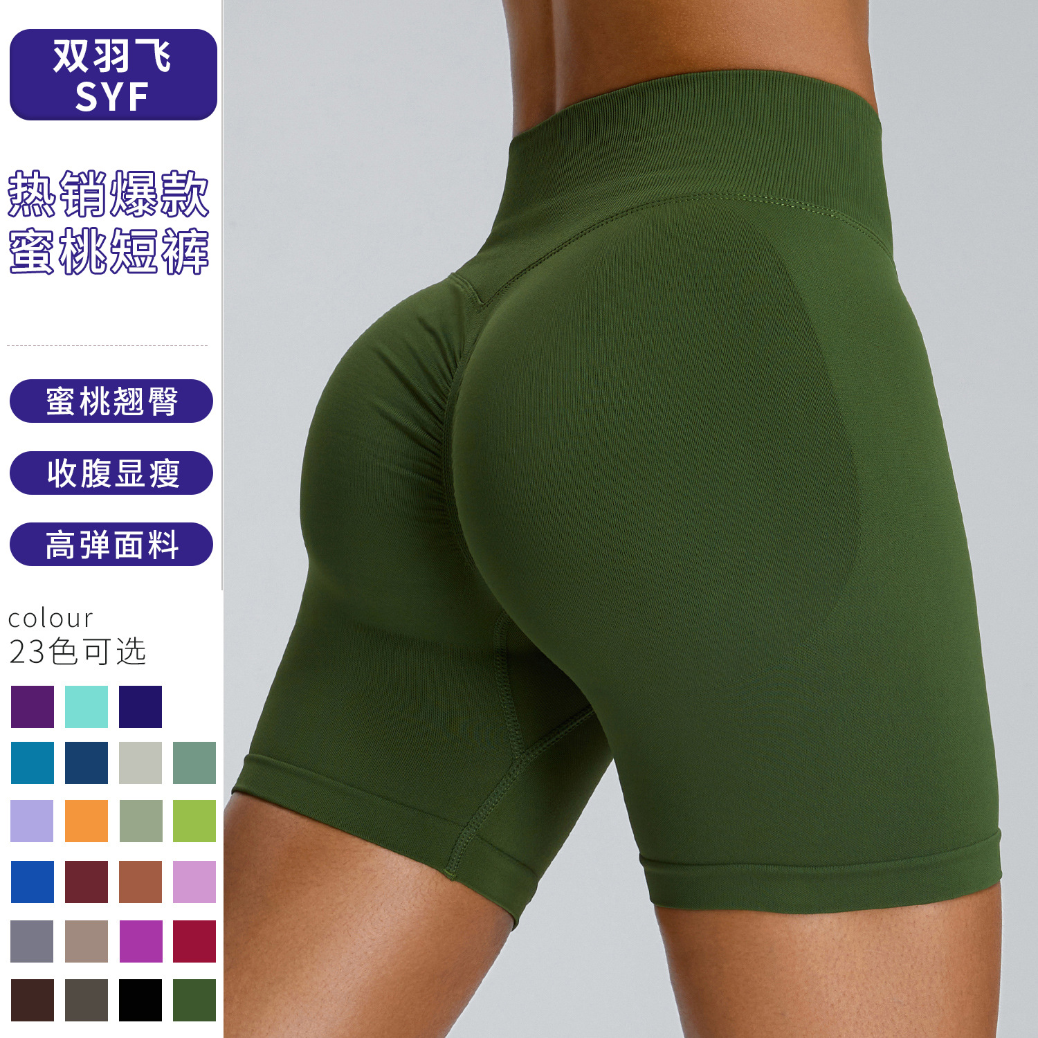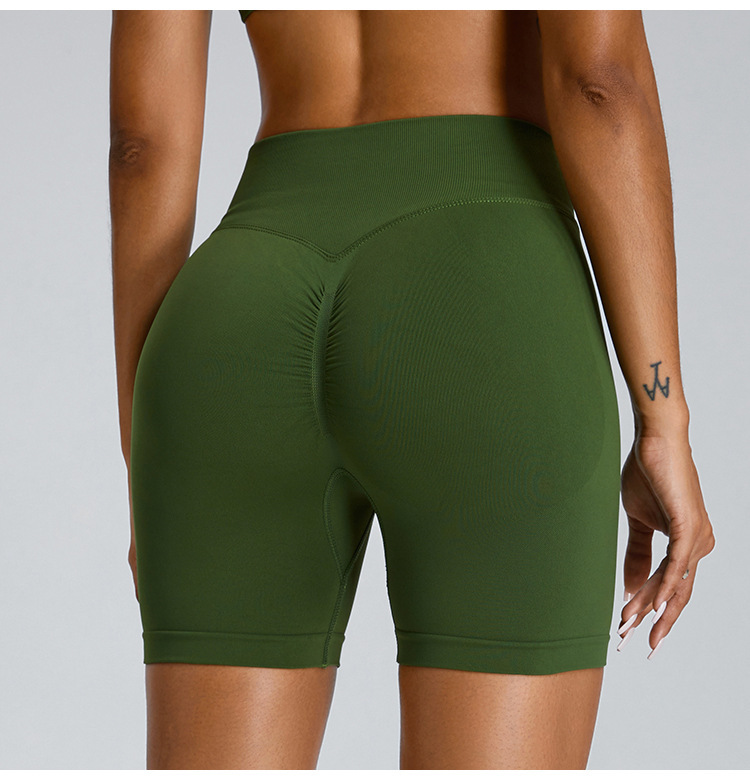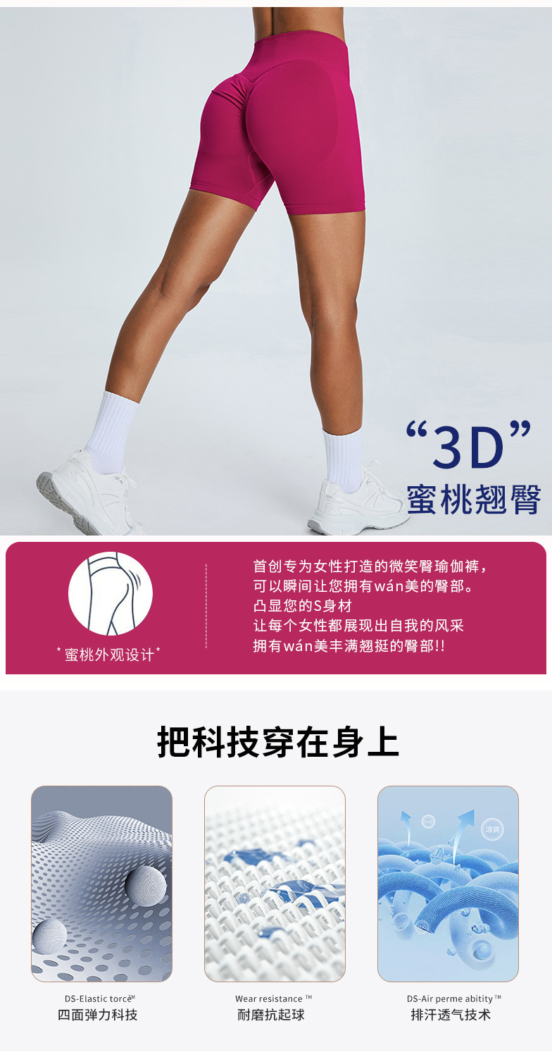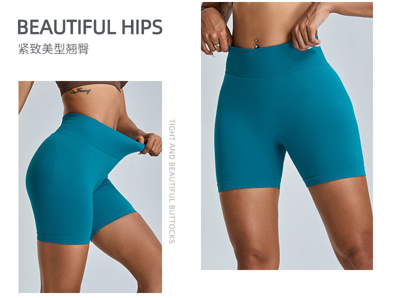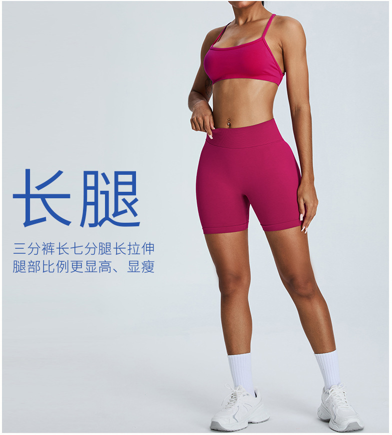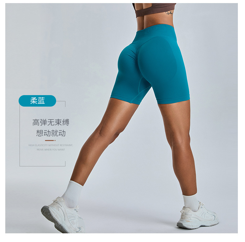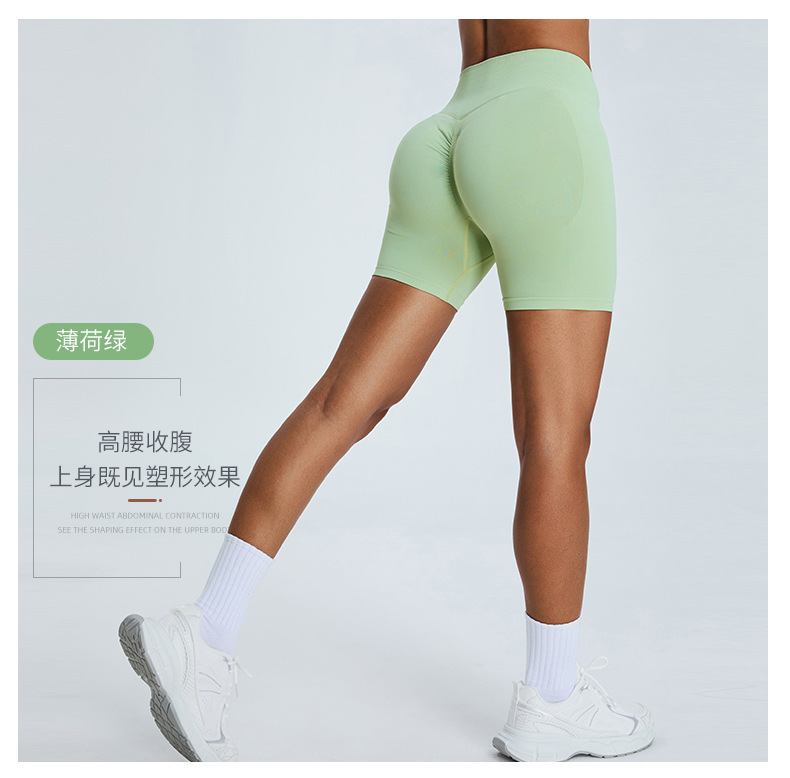 여성을 위한 새로운 크로스보더 심리스 피트니스 반바지, 하이웨이스트 엉덩이 리프팅 복숭아 3점 요가 팬츠, 타이트한 속건성 피트니스 반바지