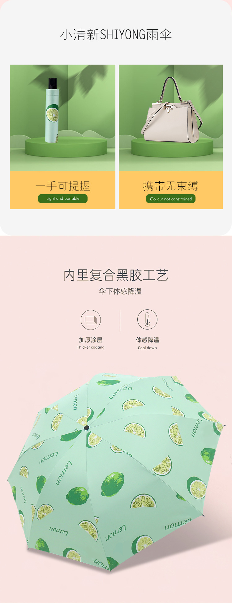 세 접는 맑은 우산 여름 작은 신선한 아이들 과일 우산 창조적 인 학생 양산 수동 도매 검은 접착제 우산