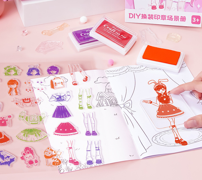투명한 씰 원피스 Diy 소녀 만화 손 책 소녀 어린이 어린이 날 장난감 생일 선물을 착용하십시오.스토어 가기