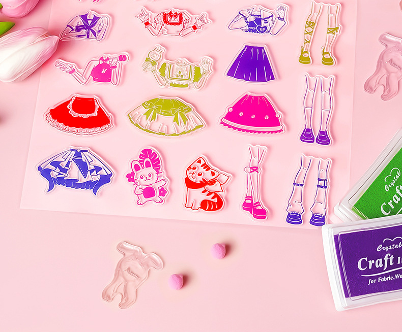 투명한 씰 원피스 Diy 소녀 만화 손 책 소녀 어린이 어린이 날 장난감 생일 선물을 착용하십시오.