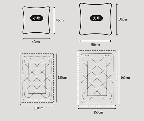 • 대형 베개 이불 펼쳐진 상태: 폭 1.5m * 길이 1.9m