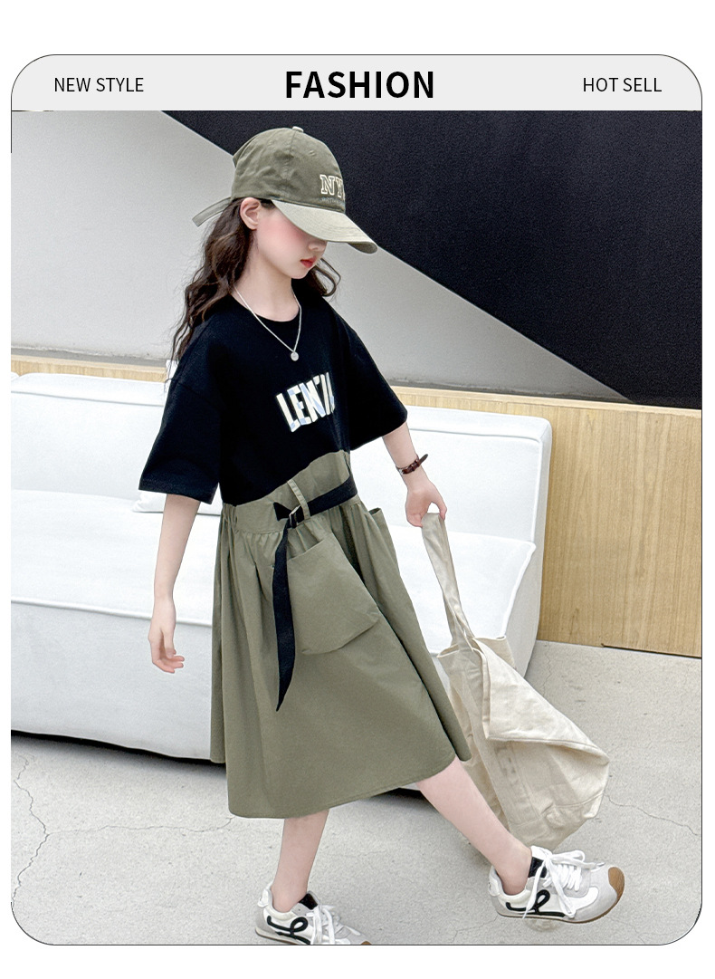 여자 드레스 여름 2025 새로운 어린이 스타일 여름 반팔 작업복 드레스 큰 어린이 여름 공주 드레스스토어 가기