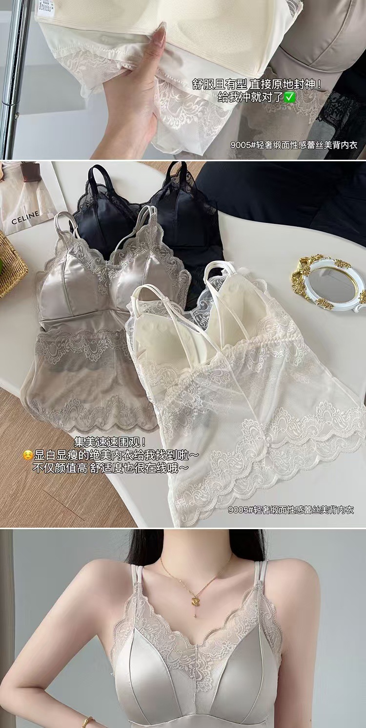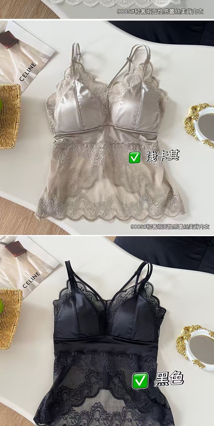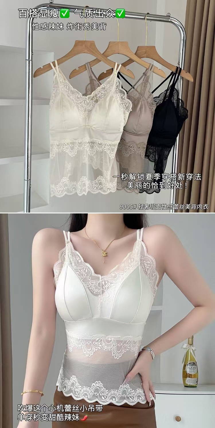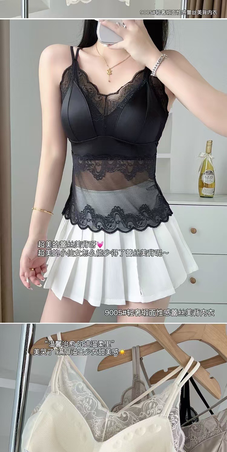 라이브 방송 인기 새틴 레이스 속옷 여성용 캐미솔 원피스 아름다운 등 튜브 탑 스타일 패셔너블하고 다재다능하며 슬림하고 슬림함스토어 가기