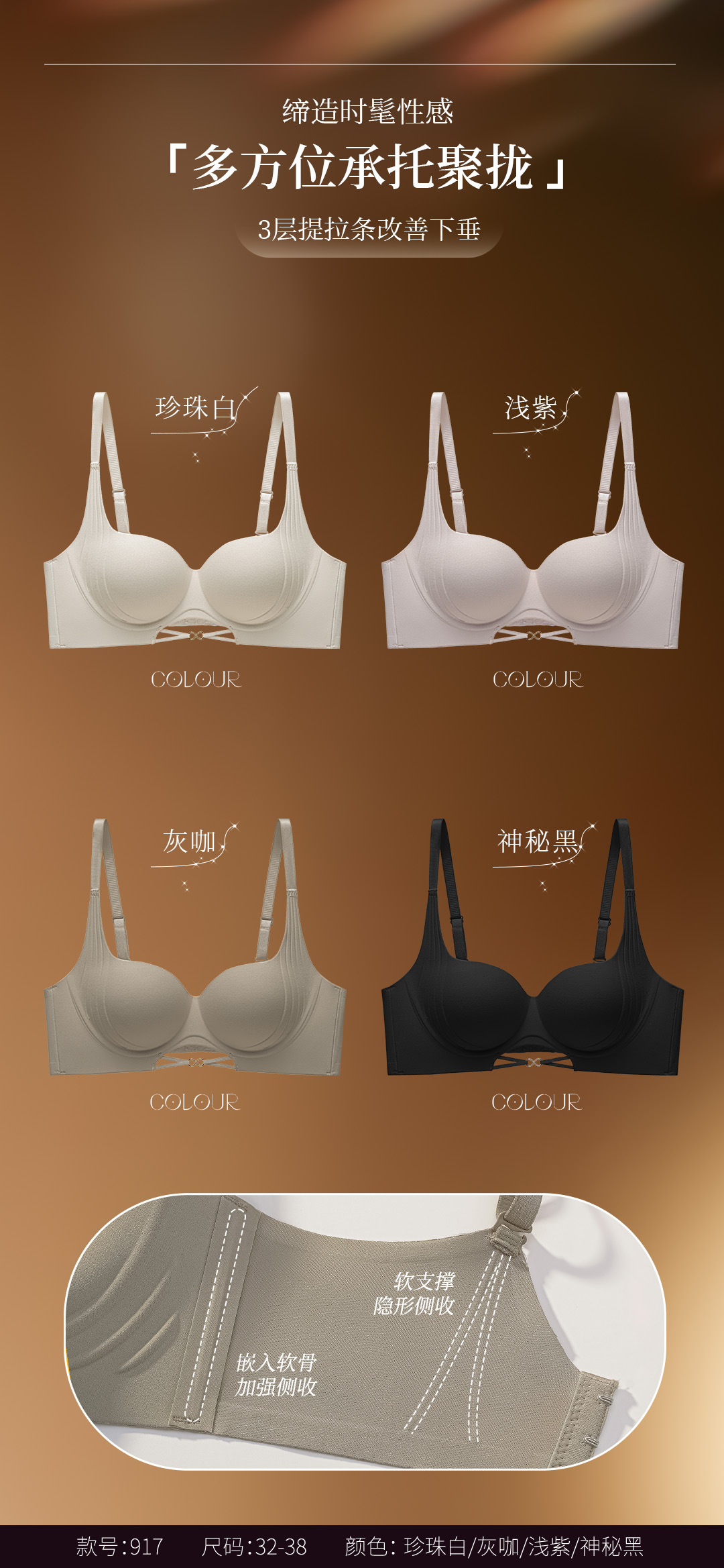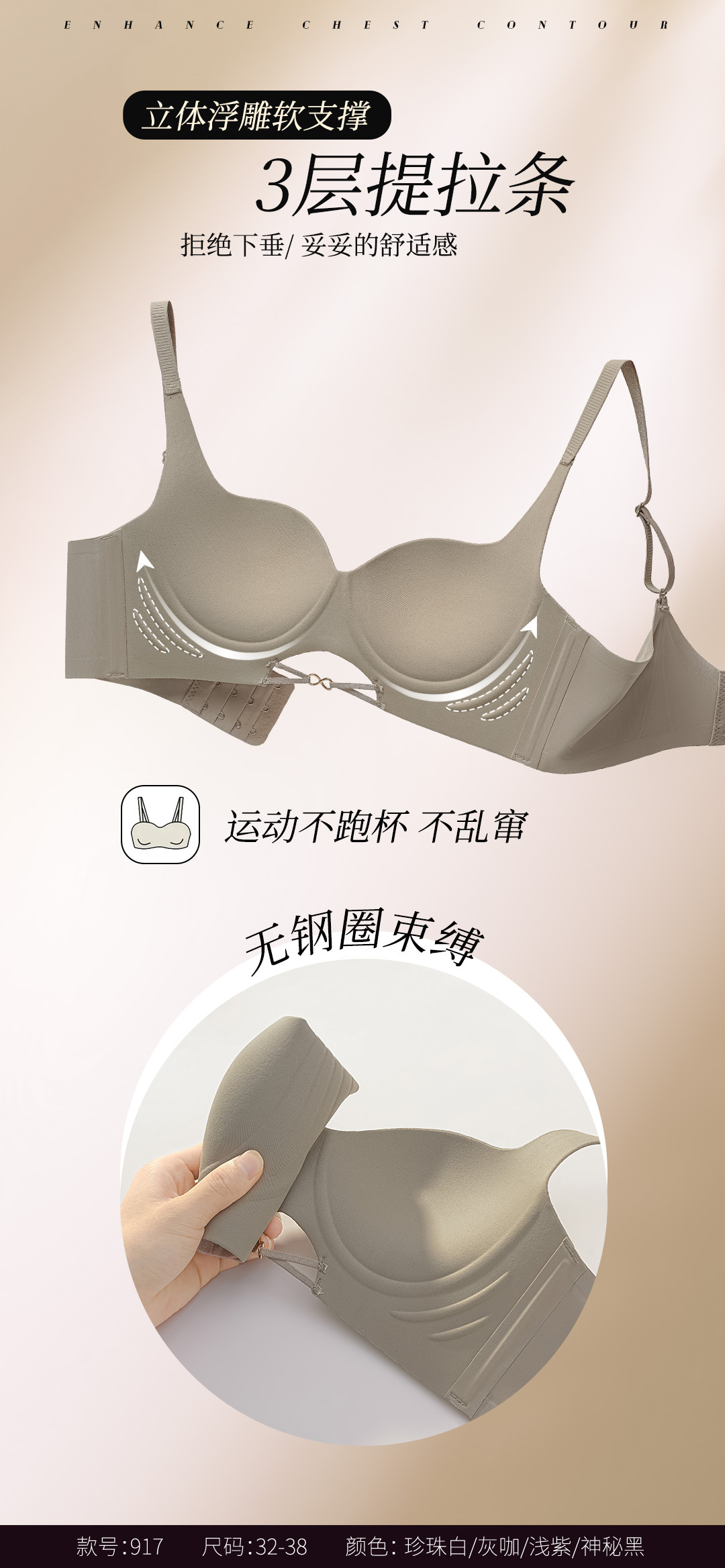 917 새로운 스타일의 리프팅 볼 컵 작은 가슴 푸시 업 및 확대 원활한 속옷 여성 처짐 방지 유방 수축 푸시 업 브래지어