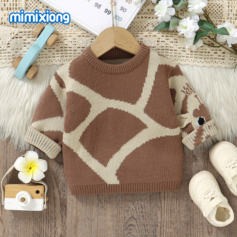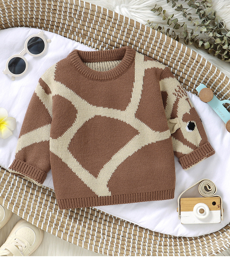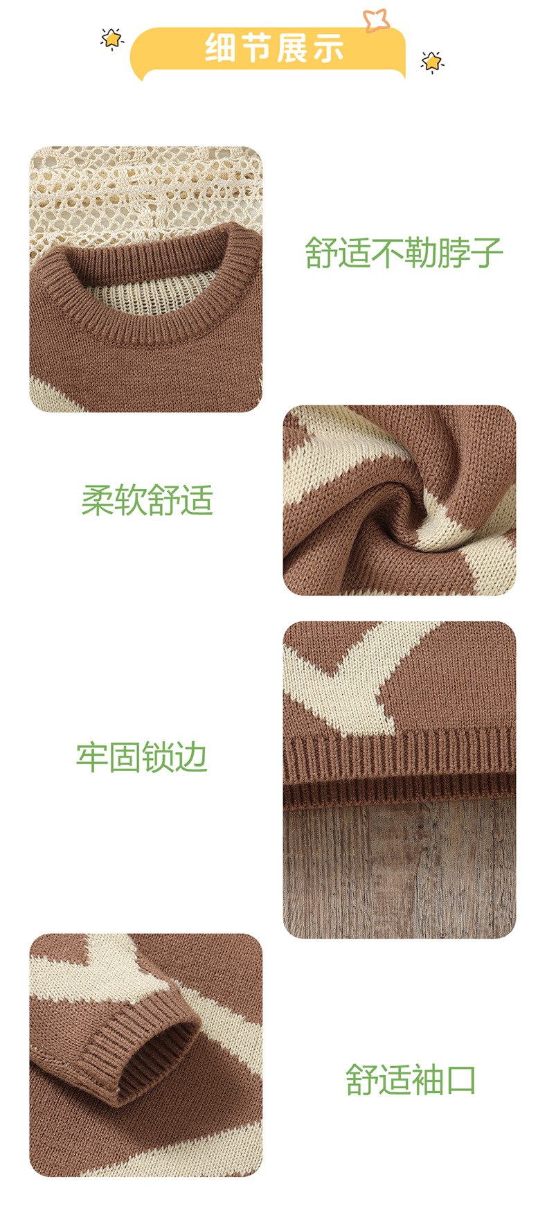 Ins 뜨거운 새로운 유아 니트 라운드 넥 탑 귀여운 입체 사슴 패턴 스웨터스토어 가기