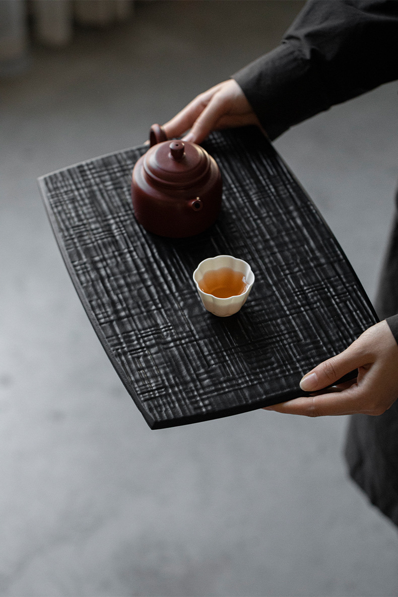 일본식 손으로 갈은 체리 우드 티 트레이 드라이 적신 트레이 간단한 창조적 인 차 테이블 레트로 냄비 선 스타일 티 트레이