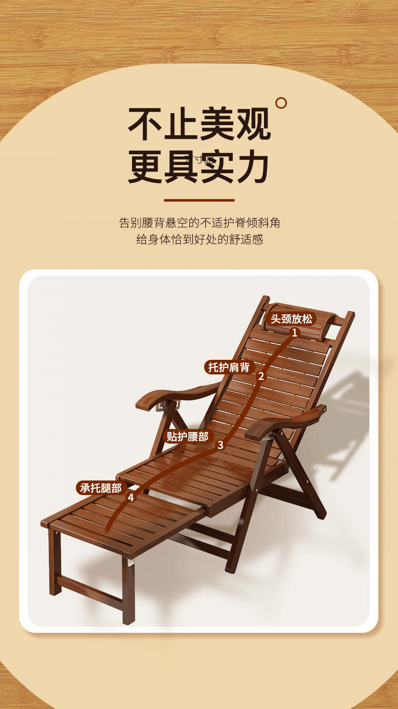 대나무 리클라이너 앉아 접는 리클라이너 빈티지 대나무 리클라이너 발코니 잠자는 의자 발코니 레저 등받이 의자