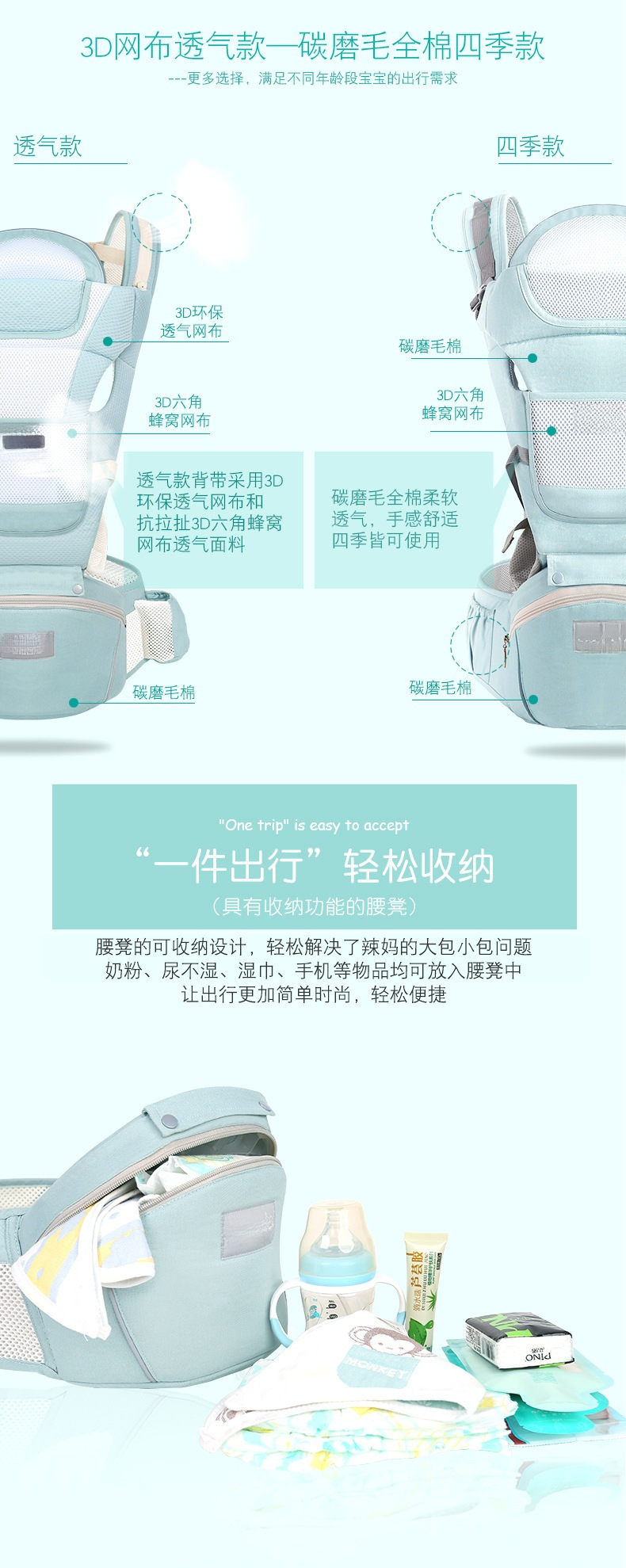 허리스툴 및 베이비캐리어 투인원 아기, 가볍고 사계절 아기 외출시 간편한 앞안아 아기아티팩트, 다기능스토어 가기