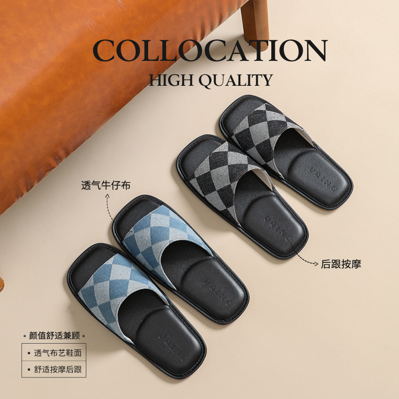 Youxin 여름 신제품 북유럽 스타일 고급 소가죽 슬리퍼 홈 실내 마사지 남성용 미끄럼 방지 힘줄 바닥