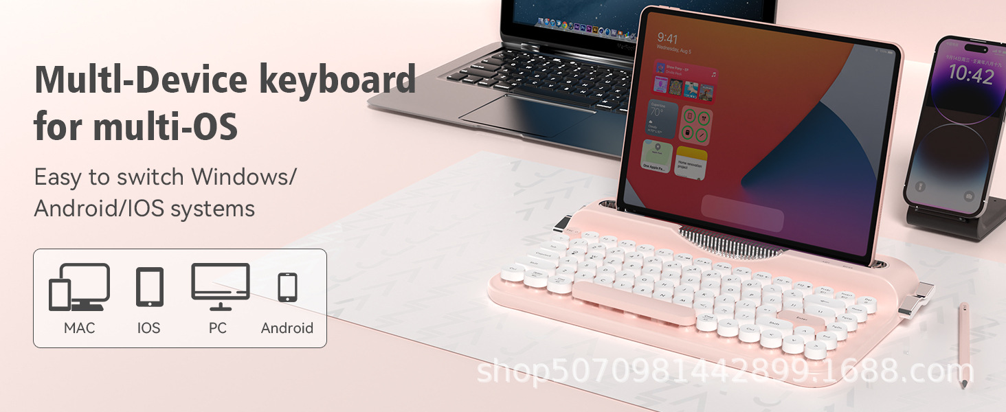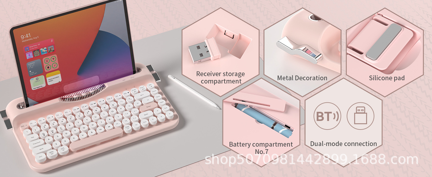 Heijue AF84 타자기 필름 키보드 블루투스 2.4G 무선 타이핑 오피스 컴퓨터 소녀용 무소음 디자인