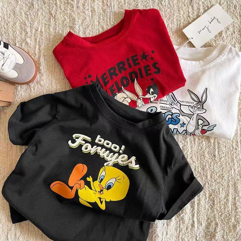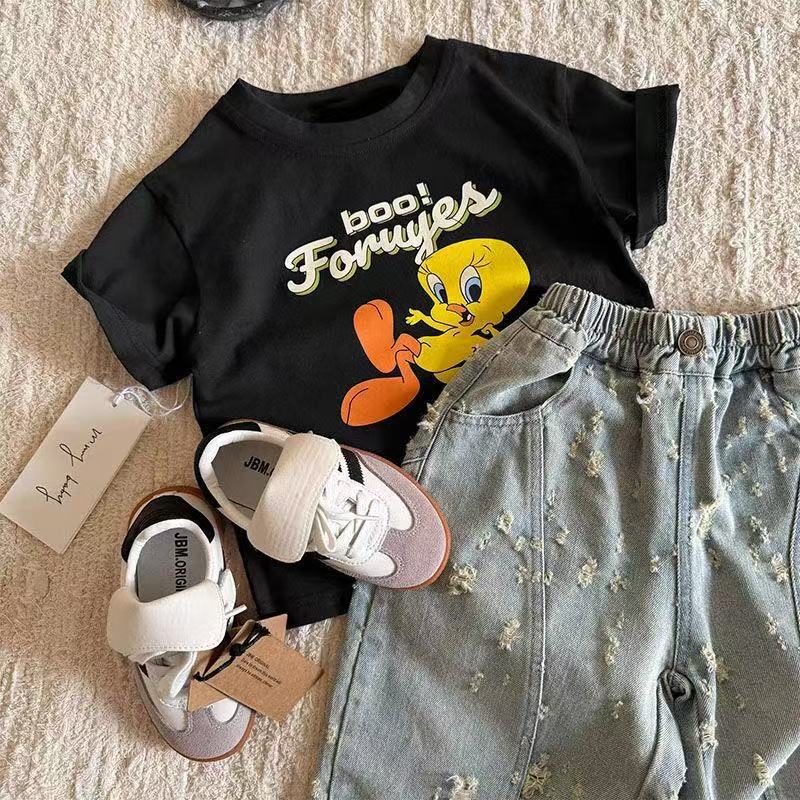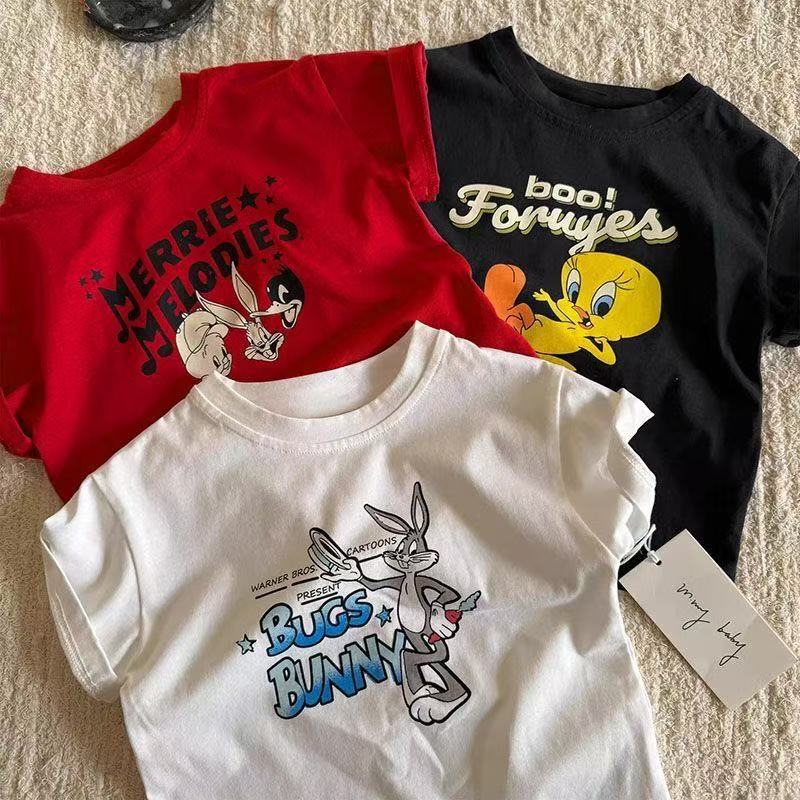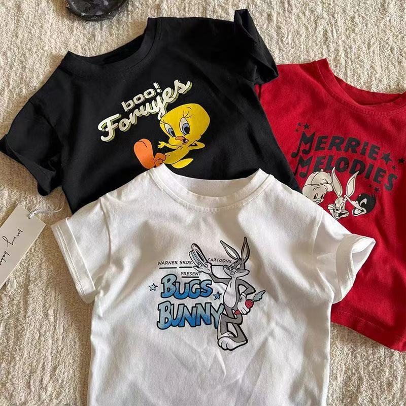 순수 코튼 어린이 반팔 티셔츠 여름 새로운 패션 다목적 캐주얼 만화 애니메이션 소년과 소녀 유행상의스토어 가기