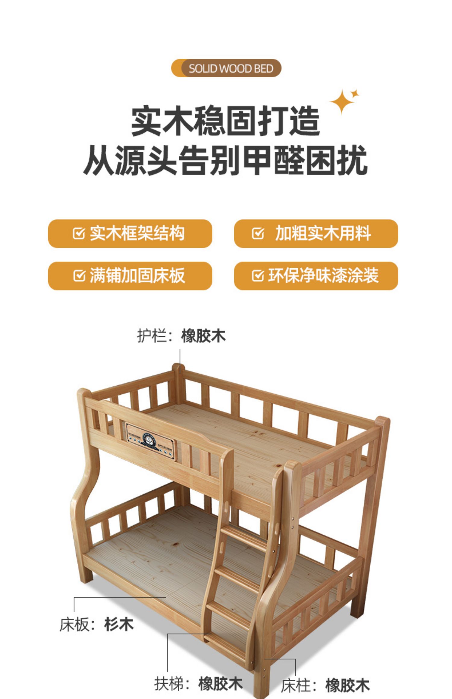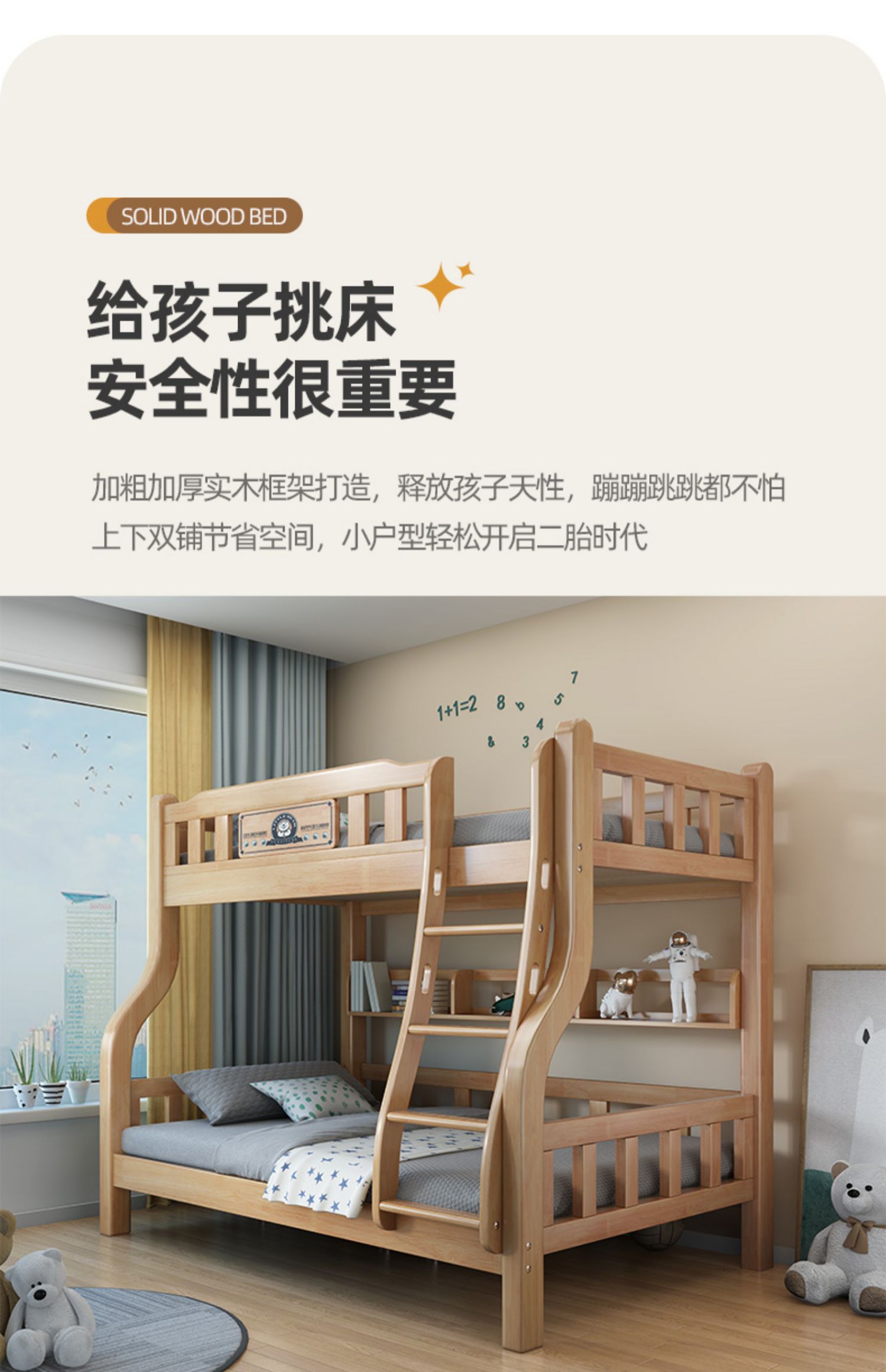 모든 원목 이층침대, 고무나무 이층침대, 성인과 어린이를 위한 다기능 이층침대, 이층침대, 이층침대스토어 가기