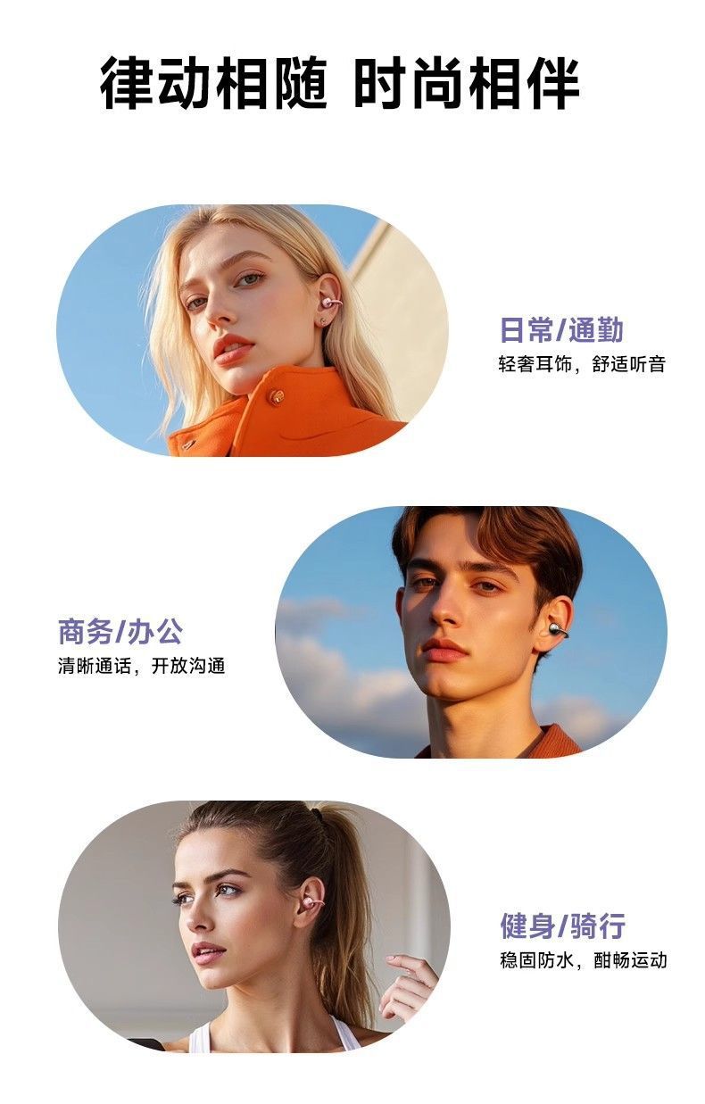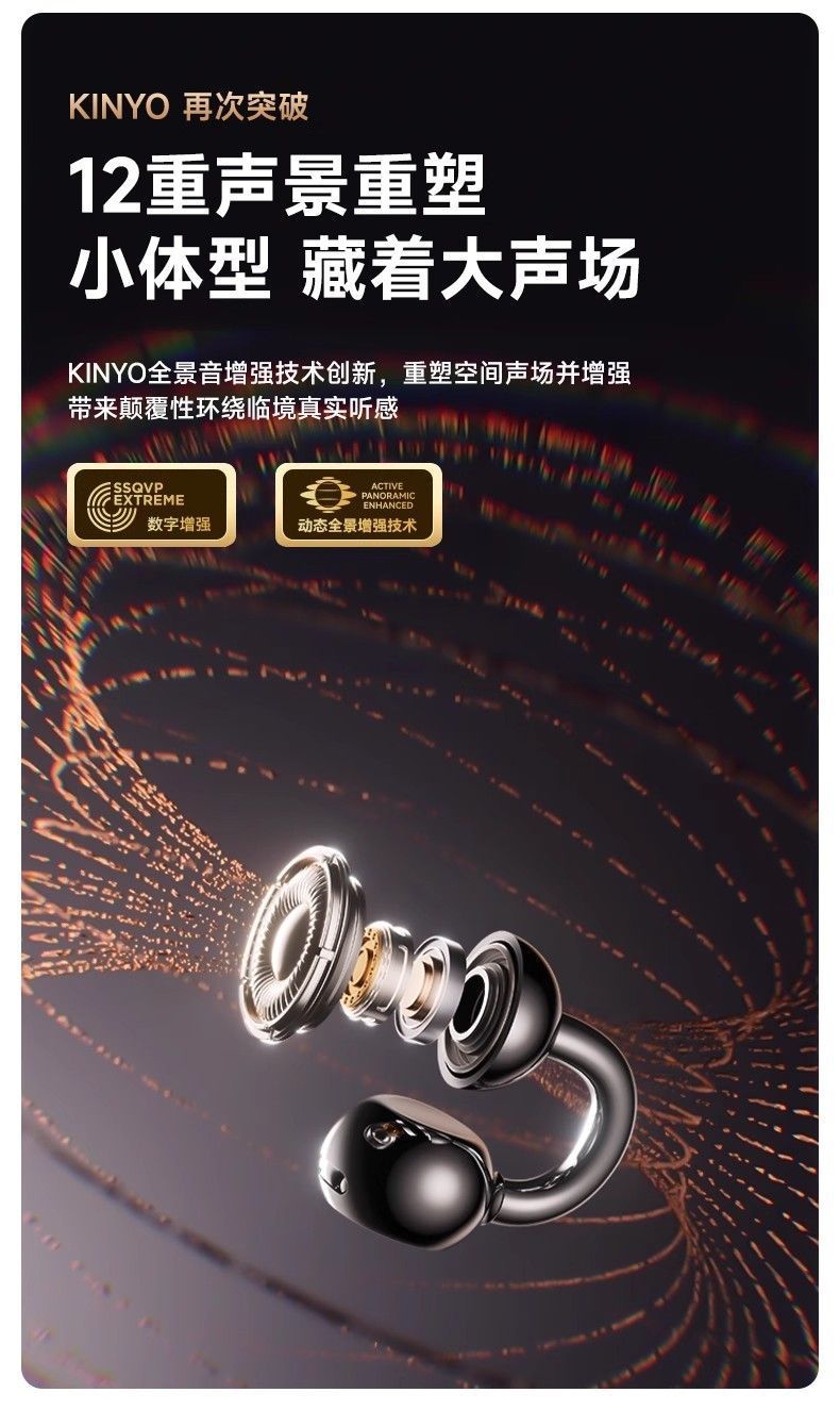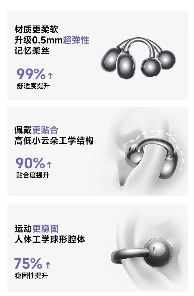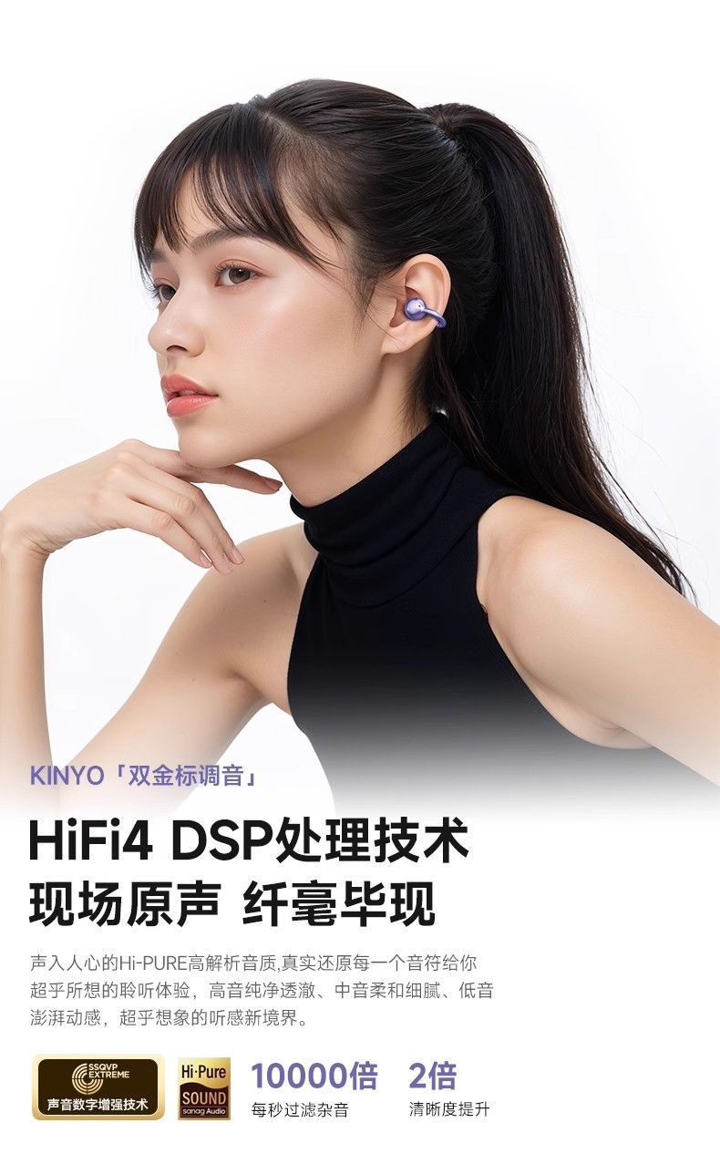 진윤 A7 블루투스 이어폰, 골전도 무선 오픈형, 귀에 들어가지 않아 오래 착용해도 통증 없음, 해외 배송, 블루투스 5.3