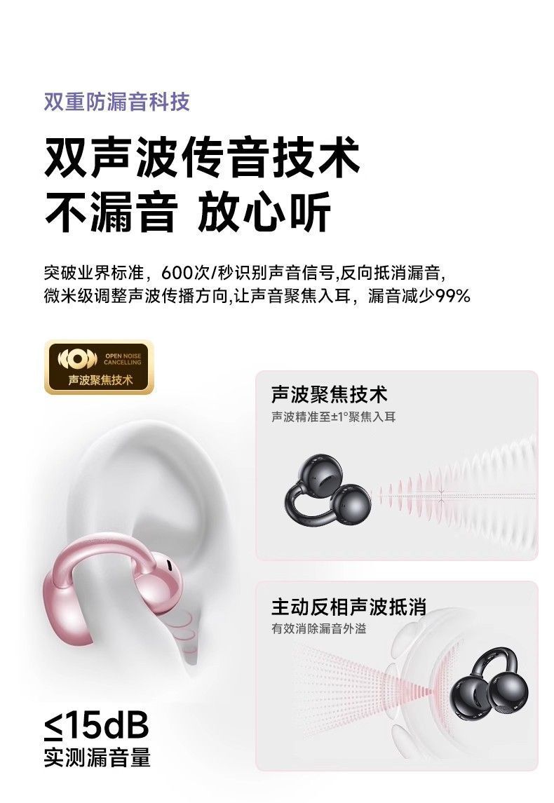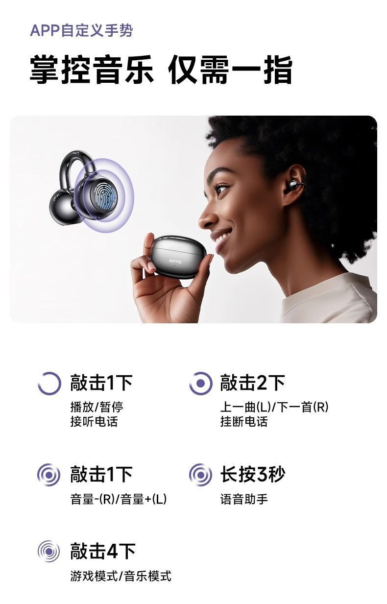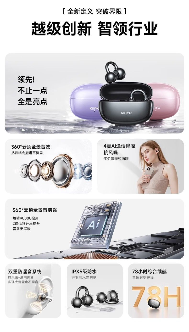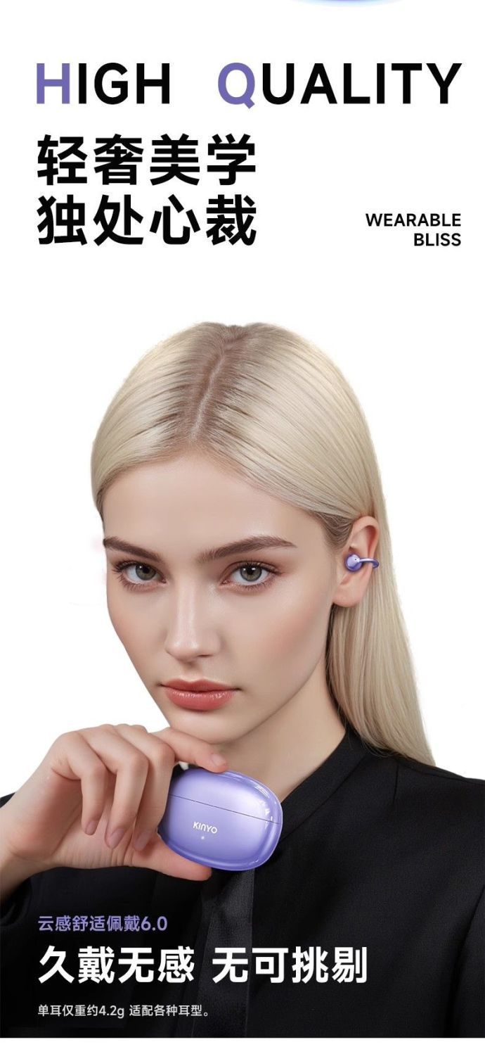 진윤 A7 블루투스 이어폰, 골전도 무선 오픈형, 귀에 들어가지 않아 오래 착용해도 통증 없음, 해외 배송, 블루투스 5.3