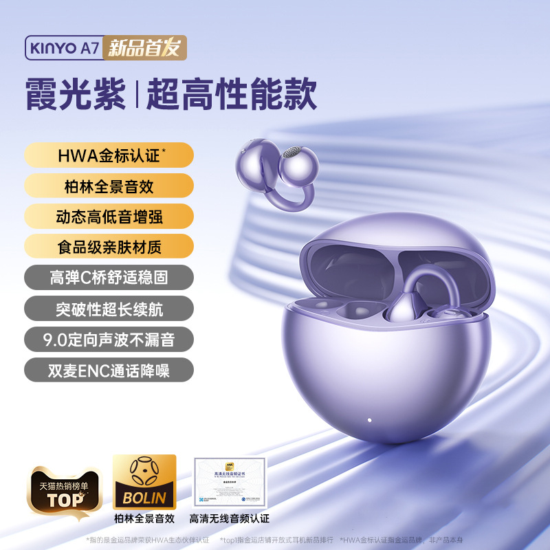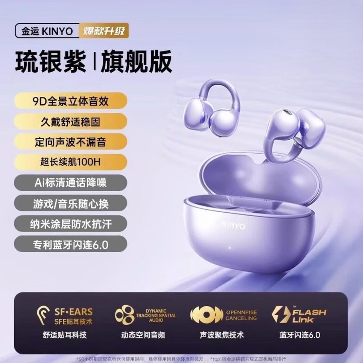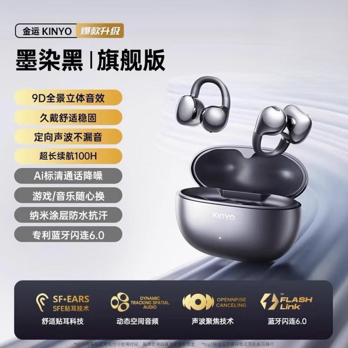 Jinyun I7 블루투스 헤드셋, 공기전도 무선 오픈형, 귀에 들어가지 않아 장시간 착용해도 통증 없음, 크로스보더 블루투스 5.3