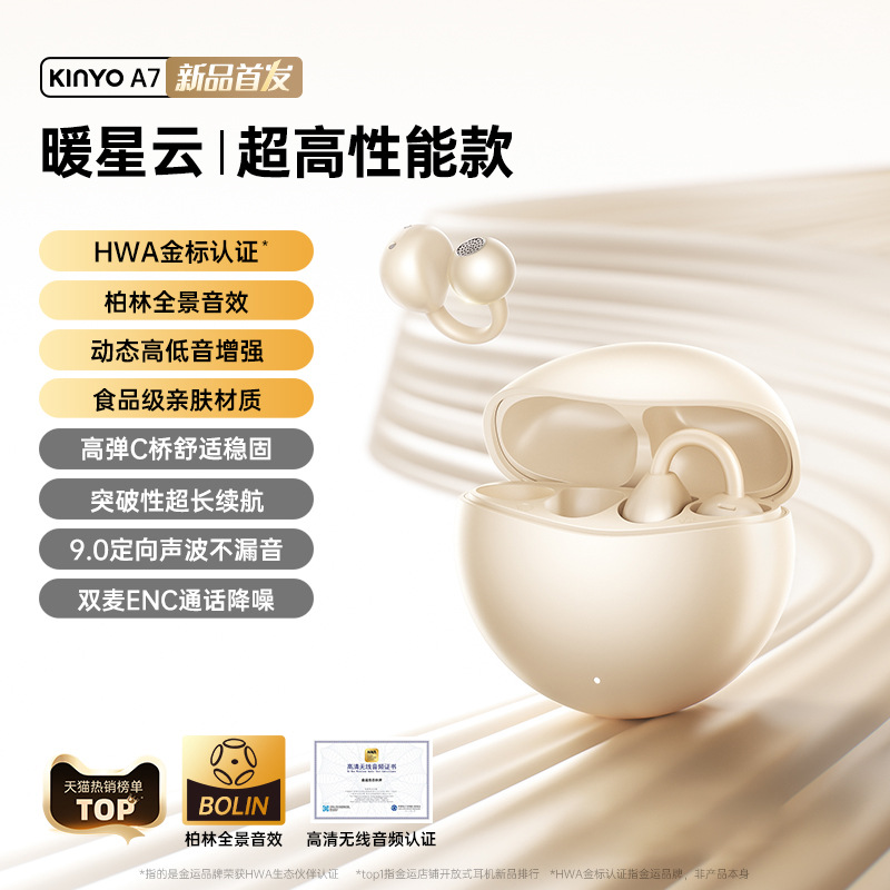 Jinyun I7 블루투스 헤드셋, 공기전도 무선 오픈형, 귀에 들어가지 않아 장시간 착용해도 통증 없음, 크로스보더 블루투스 5.3스토어 가기